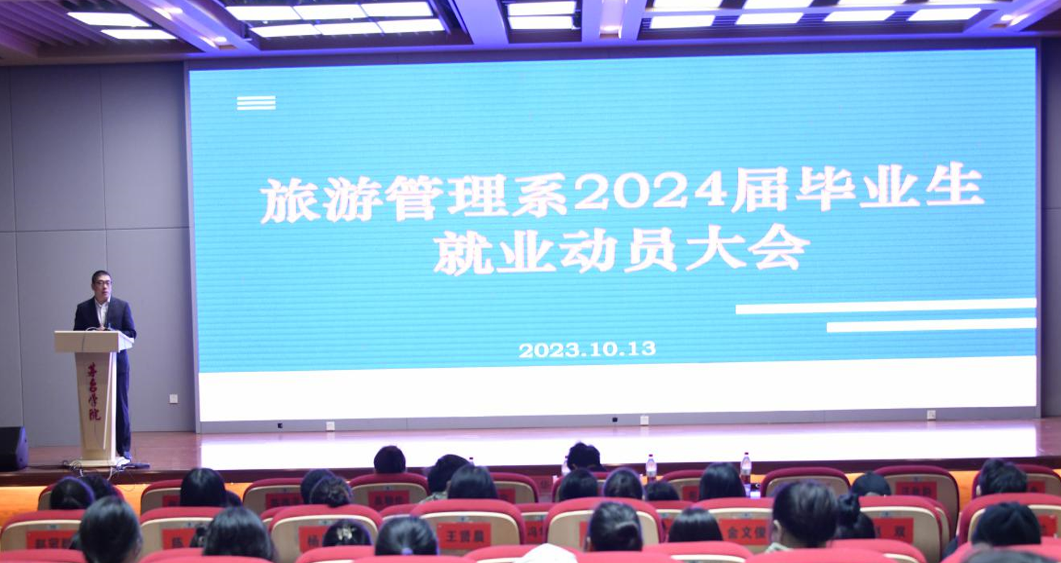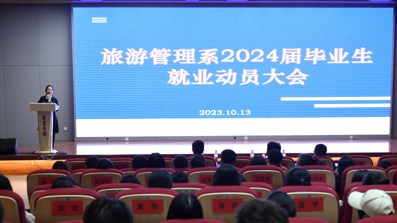 为进一步加强毕业生毕业实习和毕业论文指导,促进就业工作有序推进,10月13日,我系在学校图书馆一楼报告厅组织开展了毕业生就业动员大会。会议由辅导员胡敏主持,系党支部书记欧信忠、副主任卜建东、吕丹老师,招生就业处李华老师及我系2024届全体毕业生参加。