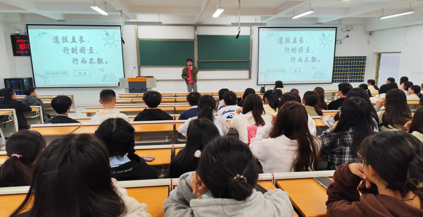 我系获国家奖学金的2020级黄海、获省三好学生的2021级龙小弼到场分享了在校期间各自成长经历。他们主要从入学到每学期学习计划,从学业规划到目标达成,从参加学科竞赛到实践活动等进行了详细介绍,引导新生转变学习心态和思维方式,从被动接收转为主动获取。同时,他们通过参加各级各类活动、竞赛的经历分享了敢于受挫、敢于成长的精神和态度,生动诠释了大学学习和生活的多姿多彩,展示了茅院学子努力奋斗、青春激扬的精神风貌。参会同学纷纷表示,此次分享让他们深受启发,受益匪浅,明白了良好的学习思路,更对未来充满信心。