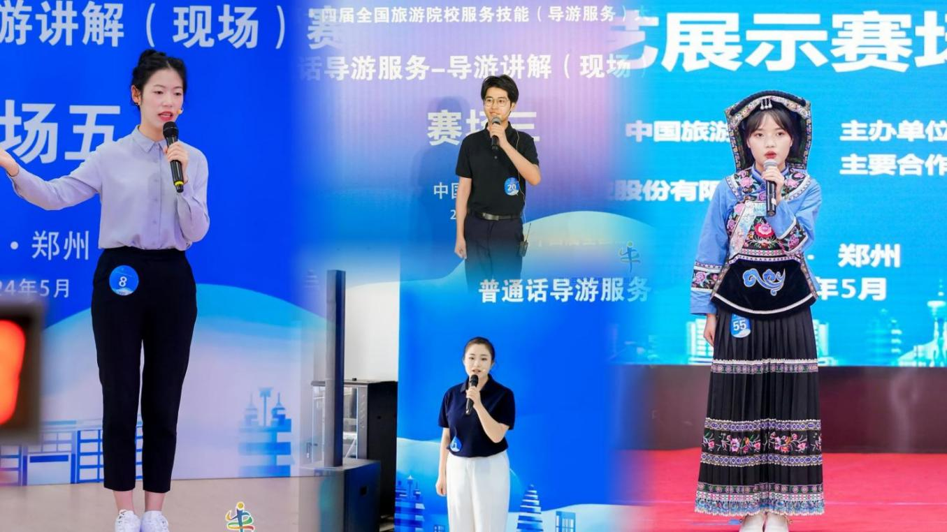 2024年5月23日,由文化和旅游部市场管理司、中国旅游协会指导,中国旅游协会旅游教育分会主办,郑州旅游职业学院承办的第十四届全国旅游院校服务技能(导游服务)大赛在郑州开幕。万象城娱乐awc线路旅游管理系由副主任卜建东带队,指导教师郄广平、陈晓钰、刘芷杙一同带领学生王晨征、章印、王兰、何禹蓓前往参赛。