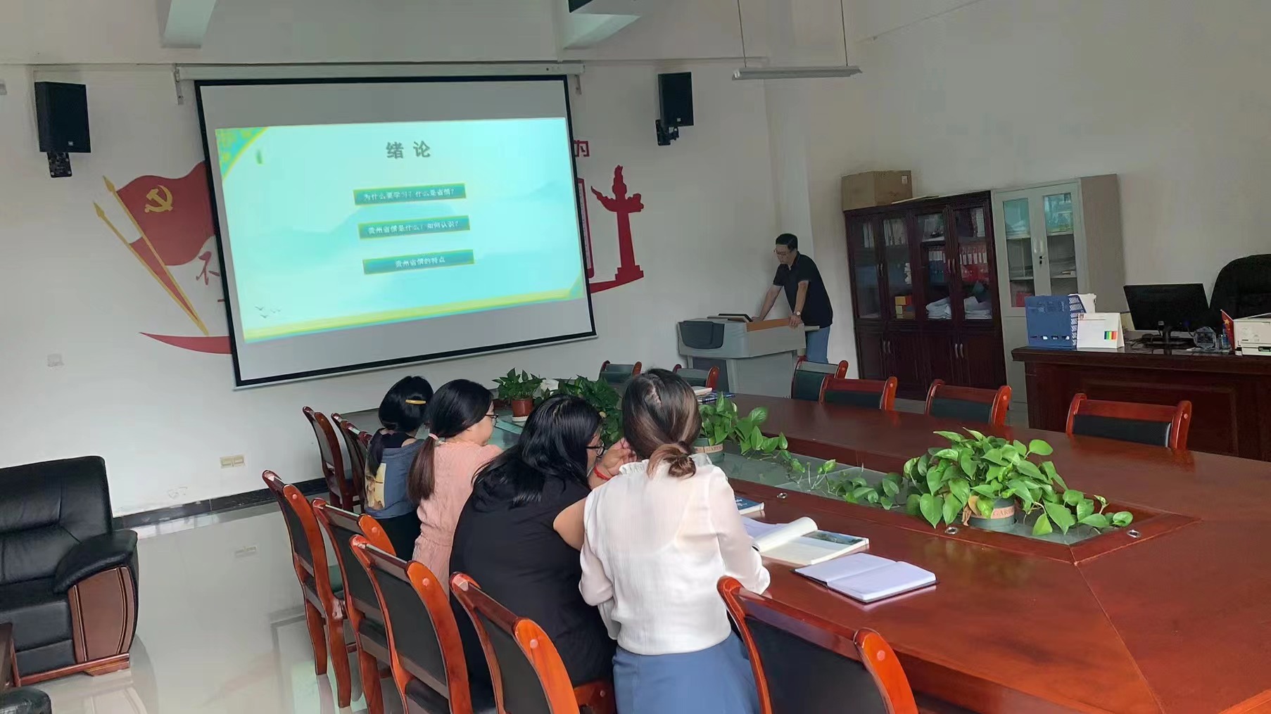 根据教研室“大练兵”计划安排,2022年9月1日下午,纲要、省情与思政教研室在留芳楼118办公室开展本学期第一次教研活动,《贵州省情课》课程组5位教师参加教研。教研室主任李志勇作为《贵州省情》绪论部分主要备课教师,结合自己五年来讲授《贵州省情》课程的经验和感悟就绪论内容进行了说课,为大家分享了自己的教学设计和教学方法。
