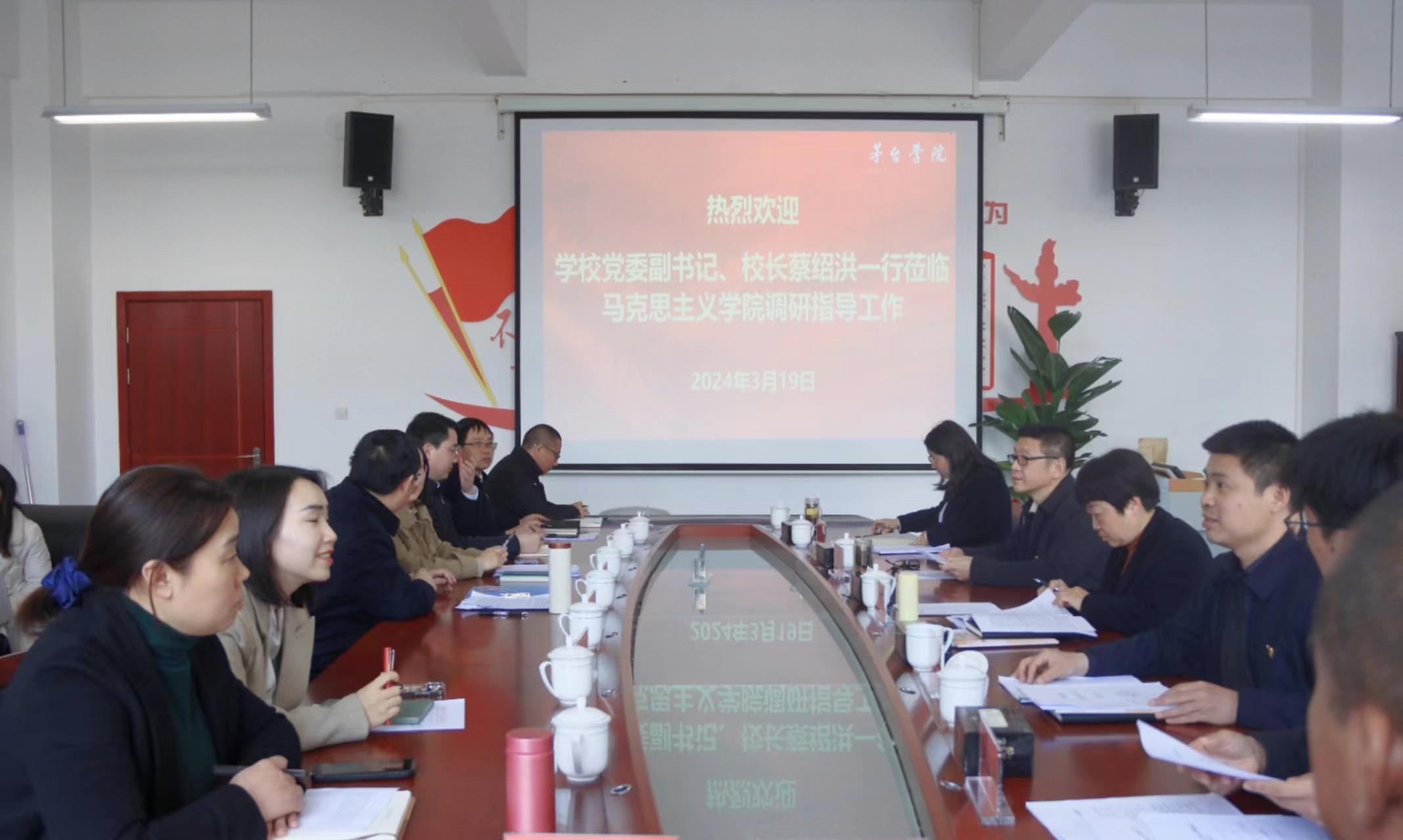 3月19日,学校校领导一行到马克思主义学院召开现场办公会,校长蔡绍洪出席会议并发表讲话,总会计师邹洪芳、副校长田戊戌、纪委书记田儒慧、副校长张春林出席会议。会议传达学习了习近平总书记“3·18”重要讲话精神,听取了马克思主义学院建设情况。