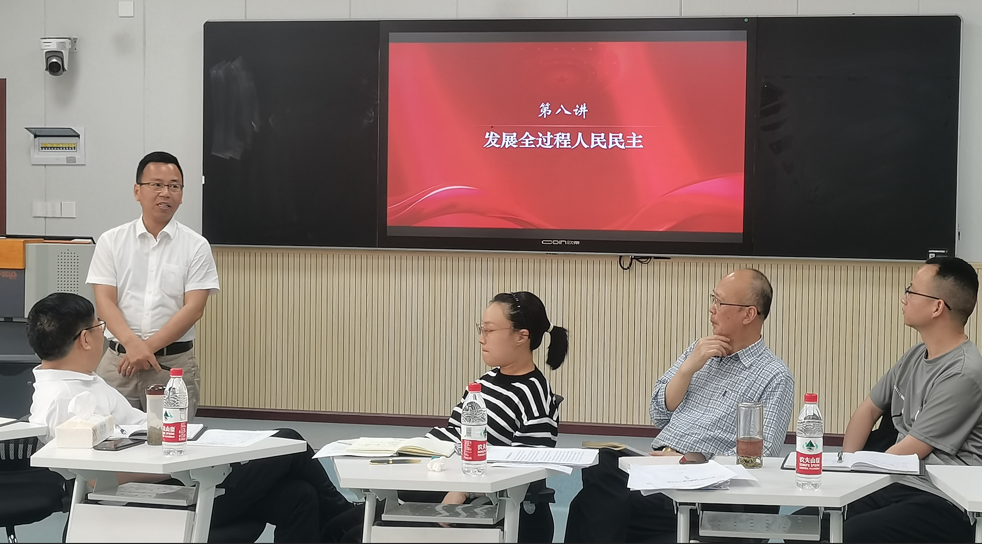 环节二:大中同备一堂课、同上一堂课。分别由仁怀一中政治教研组组长宋双燕,马克思主义学院“概论”“形策”教研室主任张世明围绕“人民当家作主”进行同课异构的教学展示。参与活动人员从教学内容、教学设计、教学手段以及思政课教学过程中,大中学段的痛点、难点问题进行了交流发言。