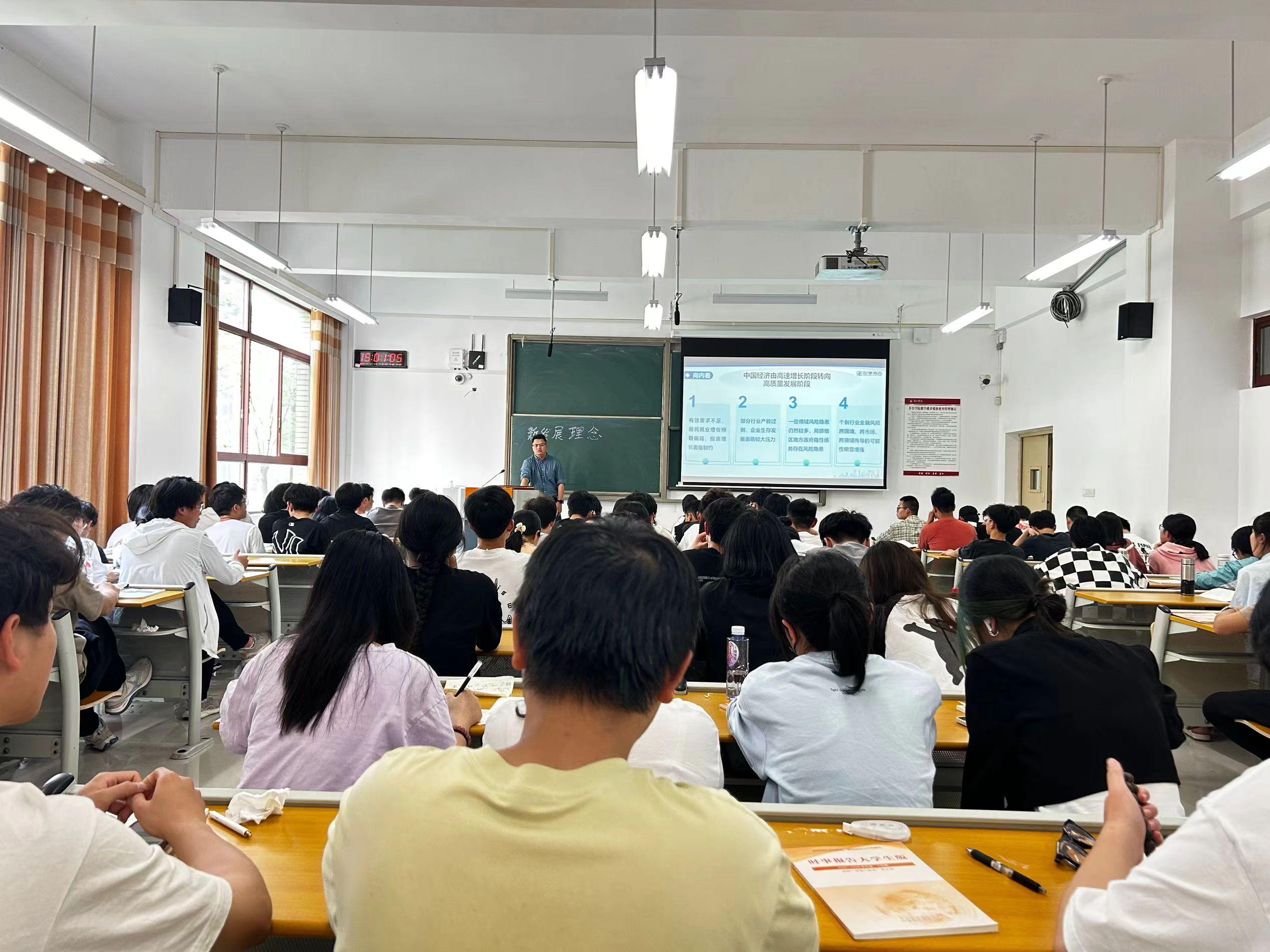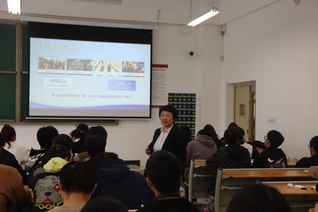 围绕高质量发展与新质生产力、当前就业形势与实施就业优先战略、当前国际形势与中国原则立场等专题,学校领导为2023级学生讲授思政课。
