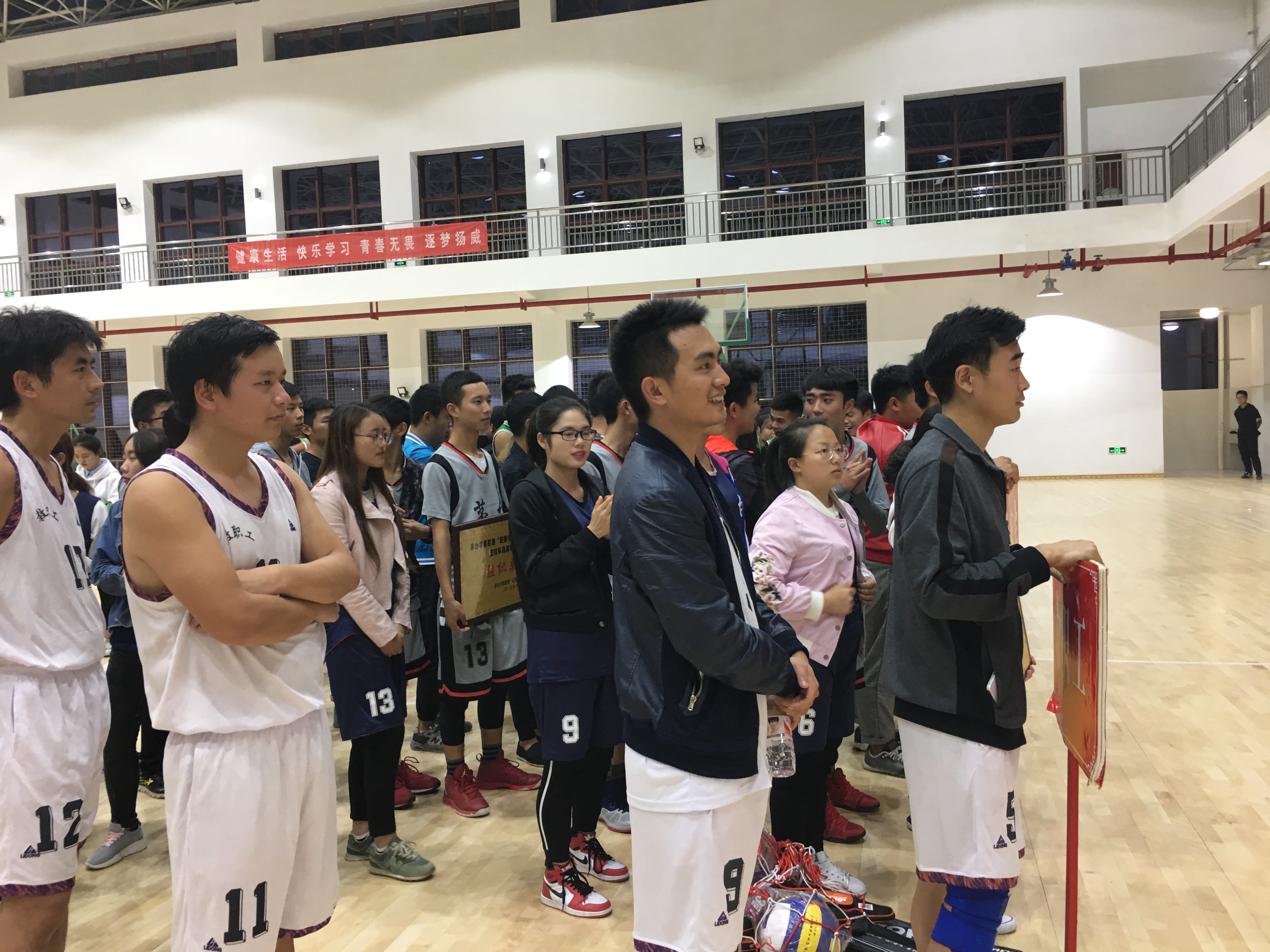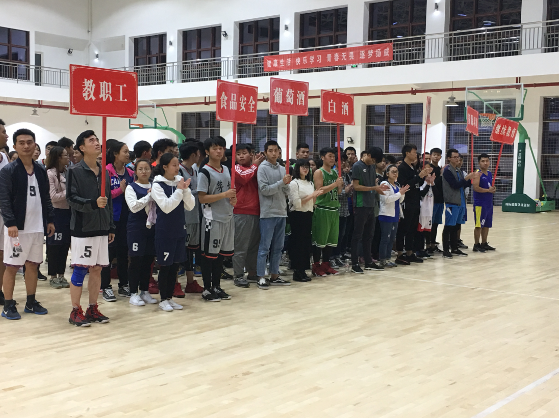 在这透露出一点点寒气的初冬,万象城娱乐awc线路迎来了首届迎新杯篮球赛!初冬的戾气抵制不住的是同学们高涨的热情。这是一场技术的较量,这是一场友谊的联决。在我们的期待中落下了帷幕。下面具体的介绍一下本次的参赛人员:教职工代表,食品安全系,葡萄酒系,白酒系,资环系,工商管理系