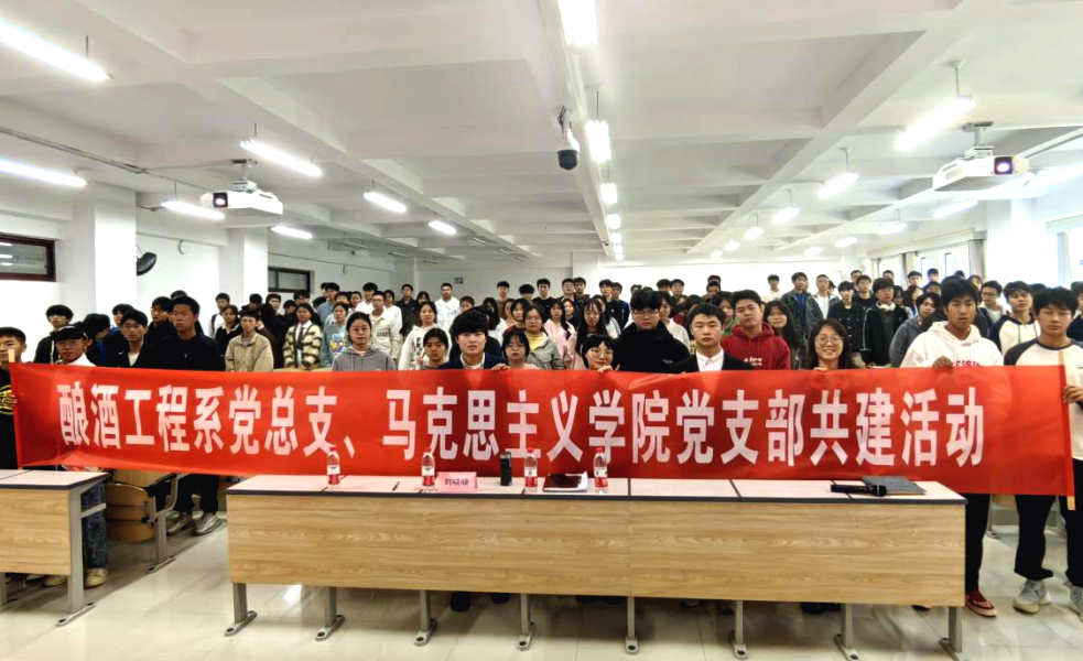 为深入学习贯彻习近平新时代中国特色社会主义思想,推进党史学习教育走深走实,进一步增强师生党员“学史明理、学史增信、学史崇德、学史力行”的思想意识,创新支部共建活动形式。2023年10月31日,酿酒工程系党总支、马克思主义学院党支部联合开展“1+1+N”理论宣讲主题活动。活动由酿酒工程系党总支副书记刘晓晓主持,马克思主义学院党支部书记、副院长李莎莎作理论宣讲,马克思主义学院党支部、酿酒工程系学生党支部全体党员同志、入党积极分子代表参加。