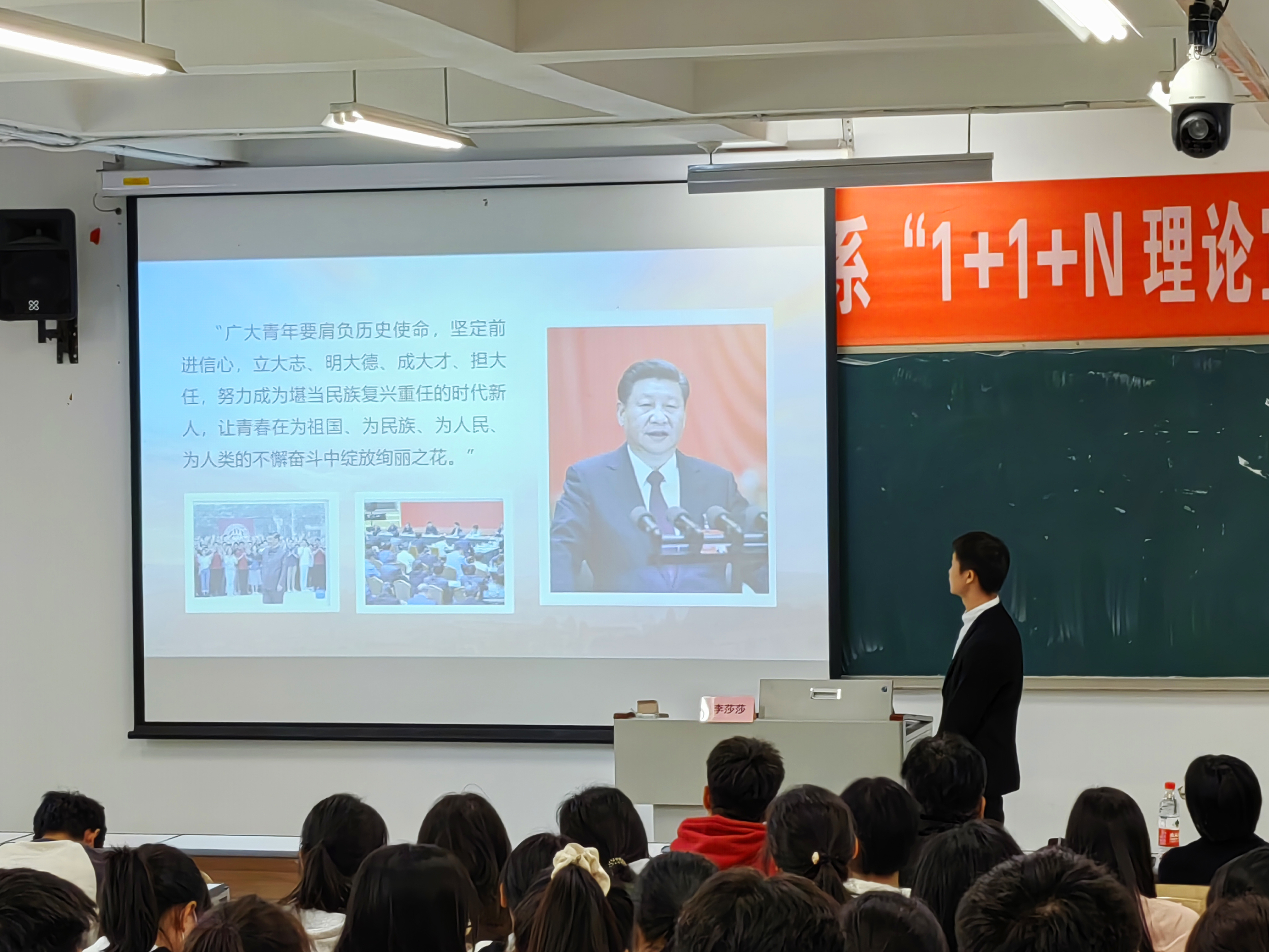 随后,马克思主义学院党支部书记、副院长李莎莎向同志们讲授党的理论知识。李莎莎同志细致梳理了党的发展脉络,围绕“中国共产党为什么能”,“中国特色社会主义为什么好”,“马克思主义为什么行”三个方面阐述了党史学习教育的重大意义。