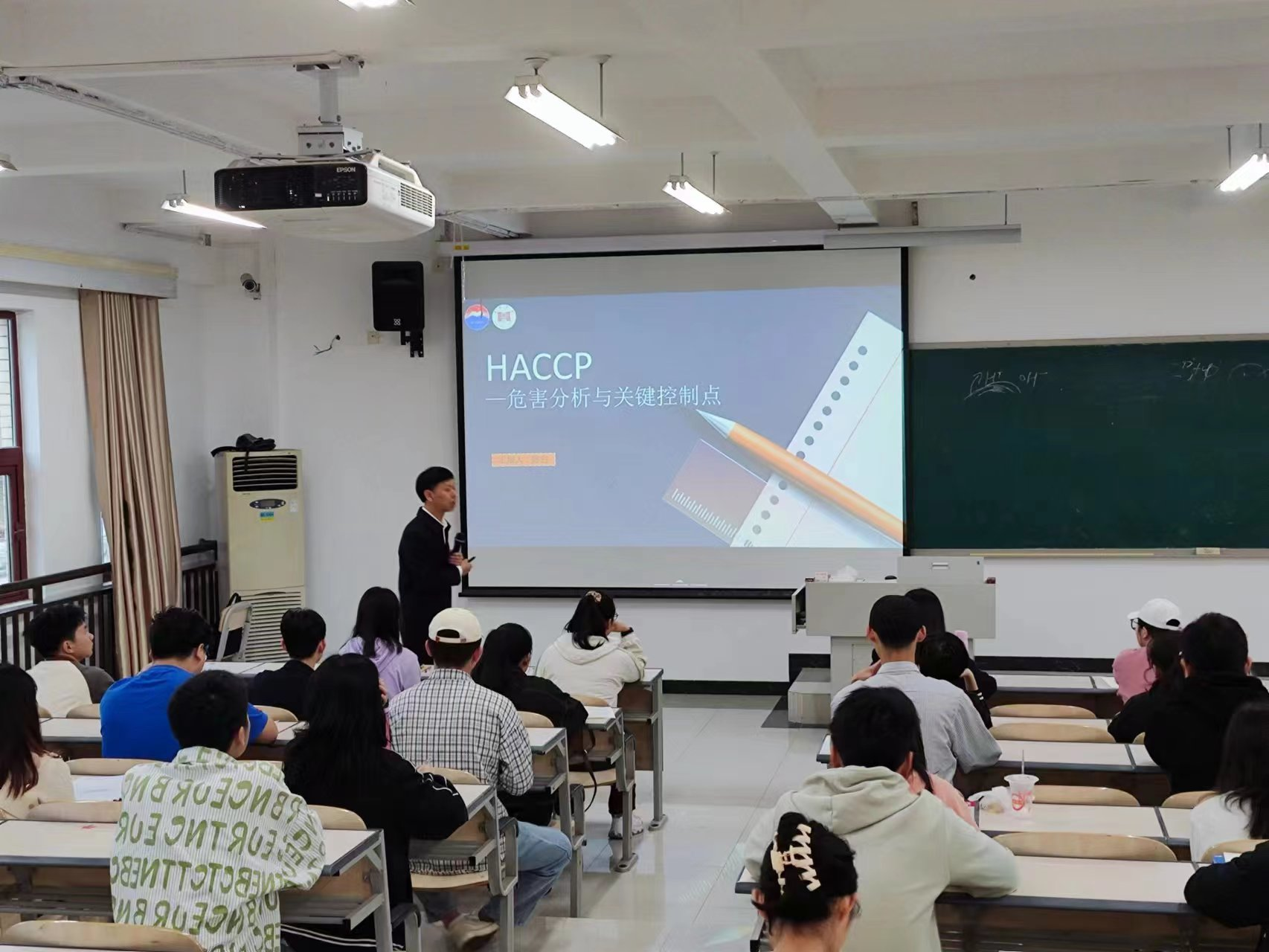 课堂上,陈名主任将自己丰富的一线生产经验与课程内容相结合,针对生产过程中每一个环节可能面临的食品安全危害、危害程度判断、危害控制等方面进行了详细讲述,从实际生产视角给学生带了一堂优质、生动的课程。学生听课认真,课堂效果较好。