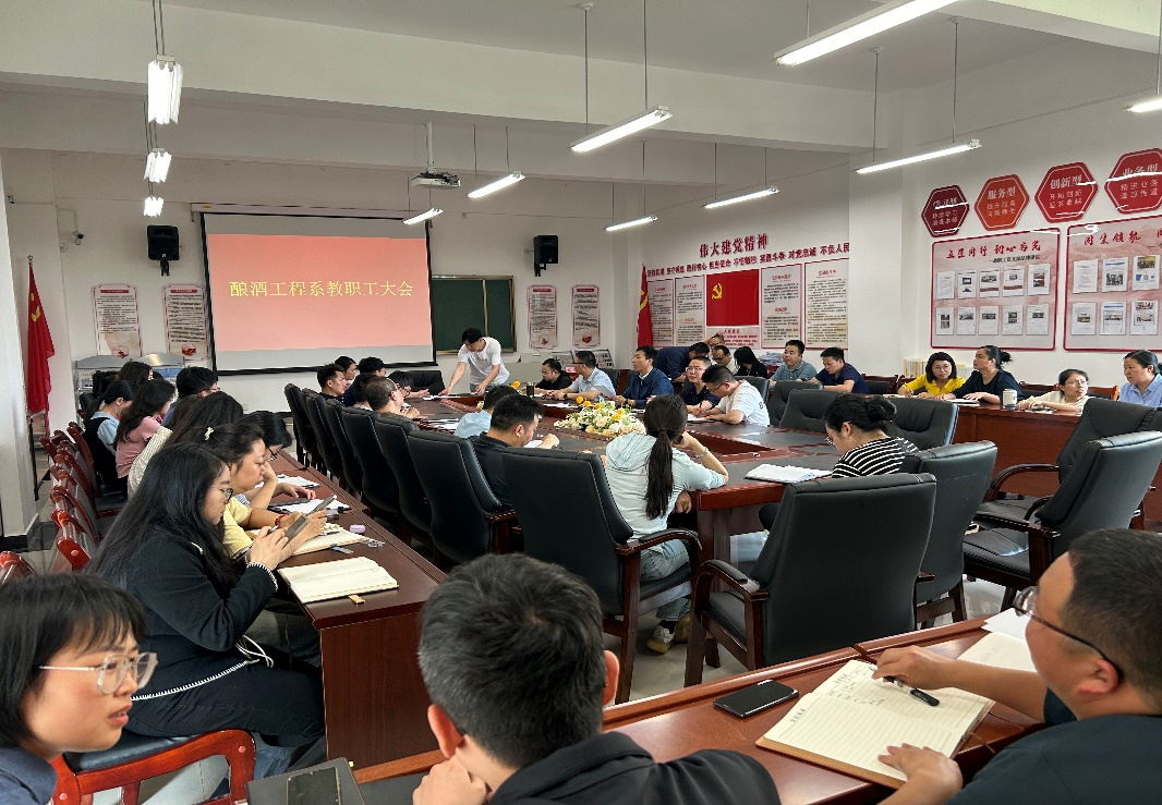 为有序推进学校教代会代表换届选举和工会会员代表选举工作,2024年4月16日,酿酒工程系在教学楼A2-208召开全体教职工大会。会议由酿酒工程系党总支书记、系主任郭举主持,学校工会副主席吴朝伦出席会议。