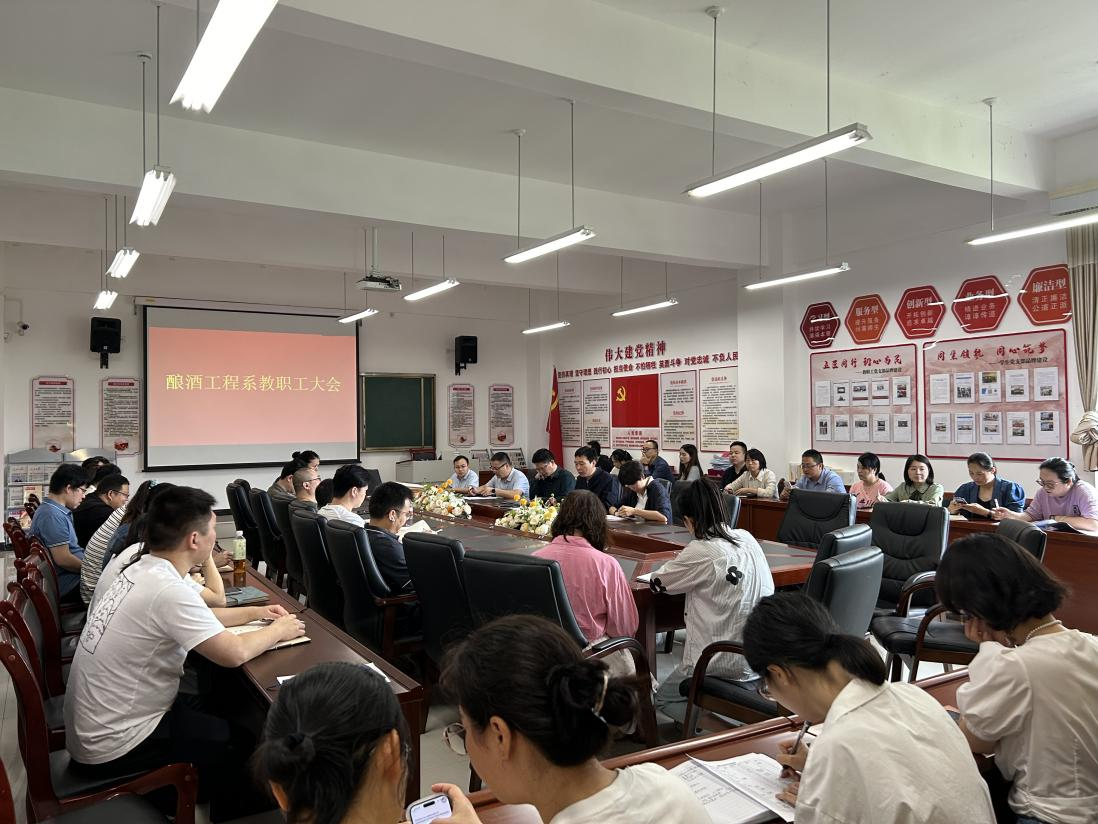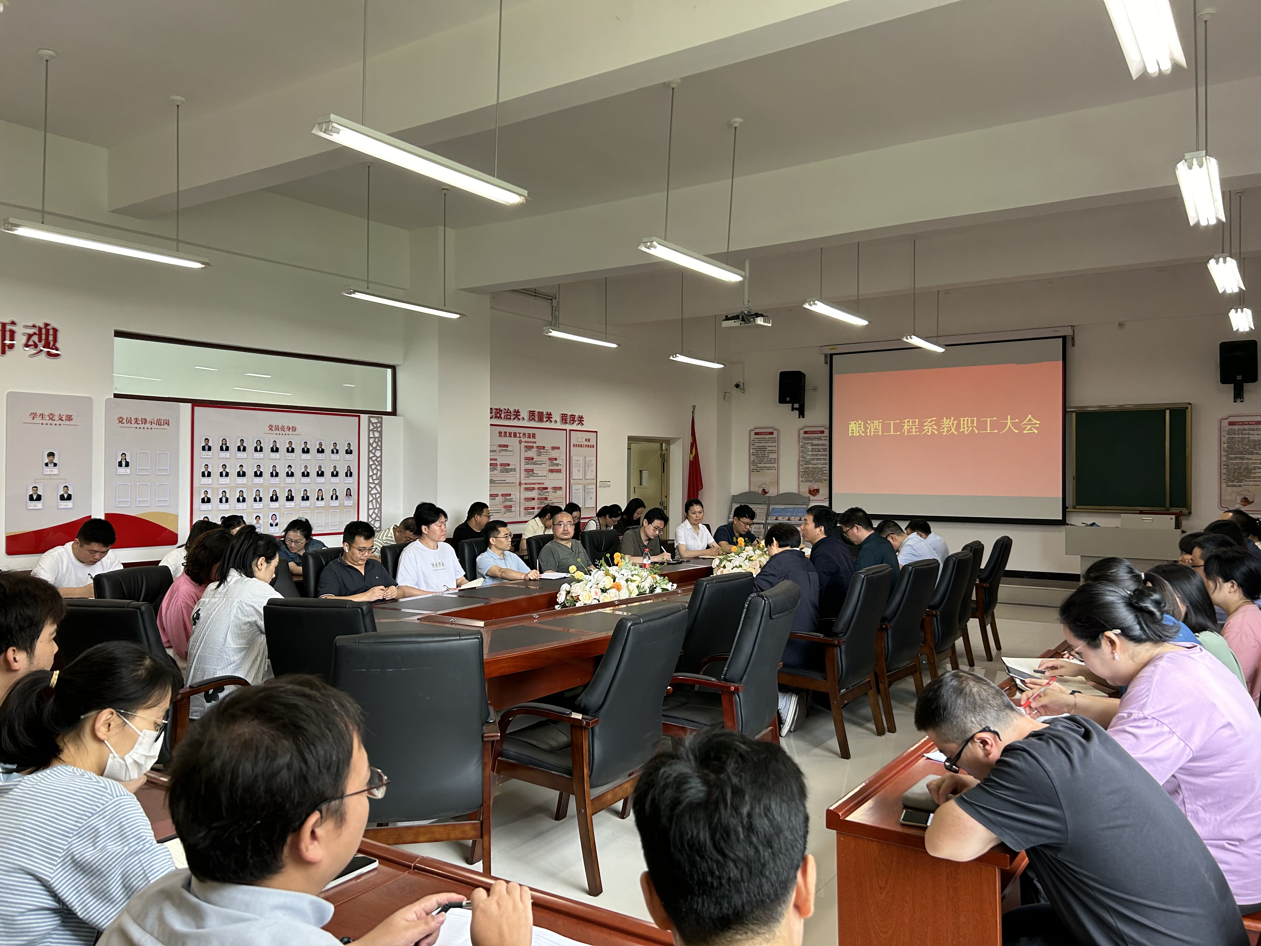 为深入贯彻并细致部署相关工作,酿酒工程系于2024年6月12日上午10:00召开全系教职工大会。此次会议由我系党总支书记、系主任郭举主持,我系全体教职工参会。