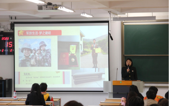 保卫国家终不悔,绿色军营献青春。会议上黄训星老师结合当前征兵工作的要求和特点,详细介绍了国家征兵政策及大学生应征入伍的各项优待政策,并号召同学们树立携笔从戎、建功军营、报效祖国的成才之志。