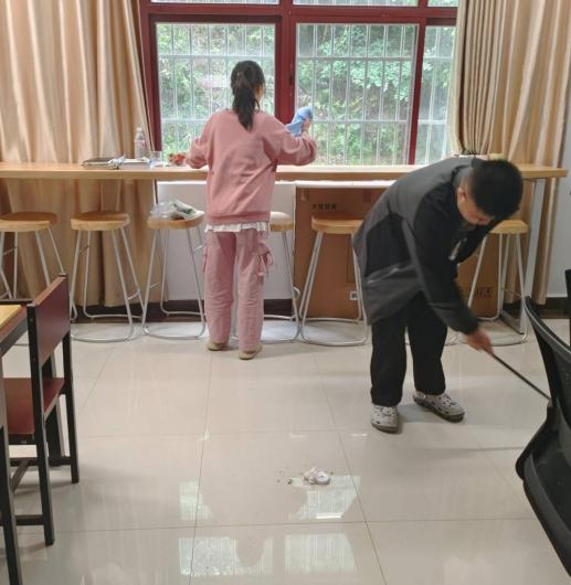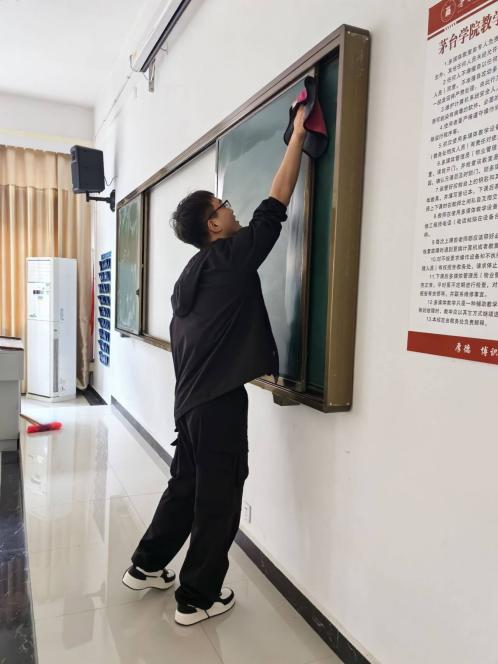 我们见证了无数青春的身影在校园的各个角落忙碌,他们或俯或仰,或扫或擦,对教学楼的走廊、教室、窗户等进行了全面细致的打扫,每一道弯曲的身影都是最美的风景。在同学们的共同努力下,酿酒工程系“一站式”学生社区的灰尘被抹净,教室里的垃圾被清除,桌子被摆放整齐,单车被摆放整齐,同学们用实际行动创造更加美丽洁净的校园。