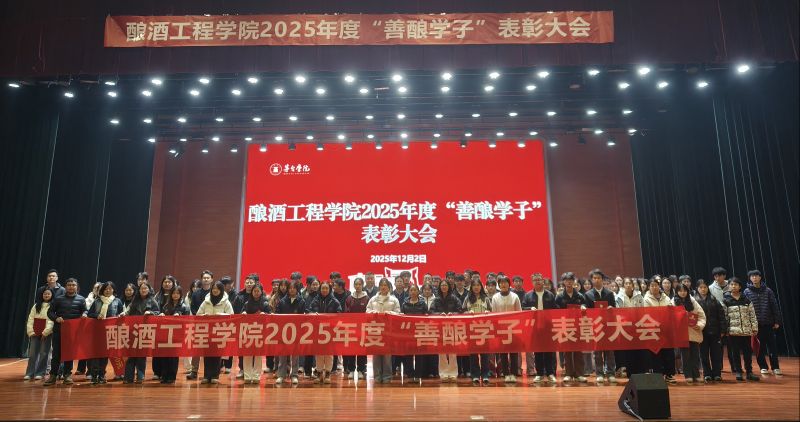 为深入贯彻落实立德树人根本任务,充分发挥先进典型的示范引领作用,激发广大学生刻苦学习、奋发向上的积极性,酿酒工程学院于2025年12月2日在学校大礼堂隆重举行2025年度“善酿学子”表彰大会。学院全体成员领导班子、全体辅导员、班主任代表及全体学生齐聚一堂,共同见证优秀学子的荣耀时刻,激励全院学生见贤思齐、追求卓越,营造比学赶超、善酿成才的优良学风氛围会议由学院学生工作室主办赵新城主持。