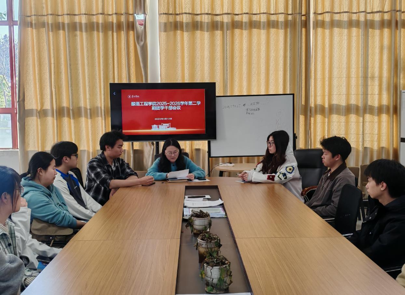 为明确新学期工作目标,进一步加强团学组织建设,提升学生干部的履职能力和综合素质。近日,酿酒工程学院团总支学生会组织召开2025-2026学年第二学期团学工作部署会。酿酒工程学院团总支学生会全体团学干部参加会议,会议由酿酒工程学院团总支书记郭蓉老师主持。