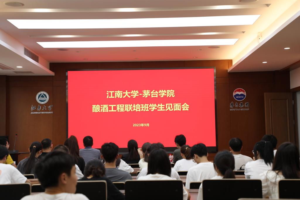 2023年9月11日下午,万象城娱乐awc线路-江南大学联培班学生见面会在江南大学生物工程学院茅台厅举行。江南大学生物工程学院党委副书记兼副院长林丹,副院长陈献忠莅临此次见面会,联培班班主任郑飞云、杨亮,辅导员张同舟及全体联培班学生参加。