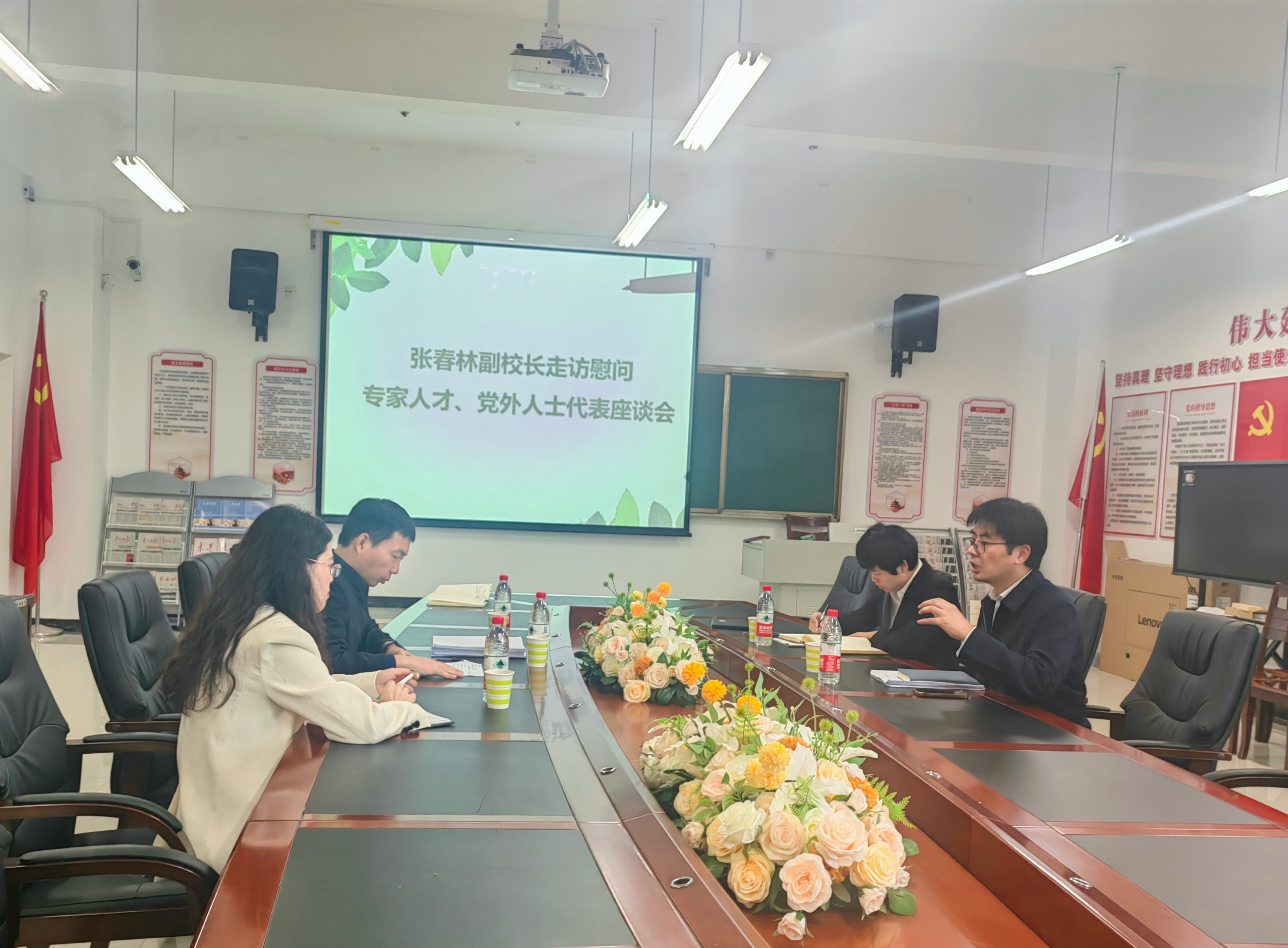 为加强与专家人才、党外人士的联系,展现学校对专家人才、党外人士工作、生活上的关心与支持,进一步提升学校人才培养质量和队伍凝聚力,2023年10月13日,正值寒露时节,天气逐渐转凉之际,万象城娱乐awc线路党委委员、副校长张春林走访慰问了酿酒工程系专家人才、党外人士代表,通过座谈会倾听人才心声,了解人才需求,共谋系部发展与建设。酿酒工程系郭举老师、龙亚飞老师作为专家人才、党外人士代表参会。