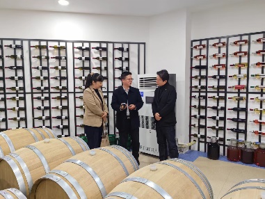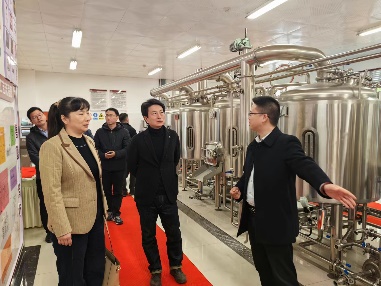 一行人先后参观了学校大型仪器共享平台、酿酒工程专业实验室、葡萄酒酒窖室、啤酒及果酒中试生产线以及酒体设计及品评室。我系副主任吴德光详细介绍了我系实验及实训室相关建设情况,并就对方提出的关于实验室建设思路、建设规划及人才培养支撑情况的问题做了现场解答。