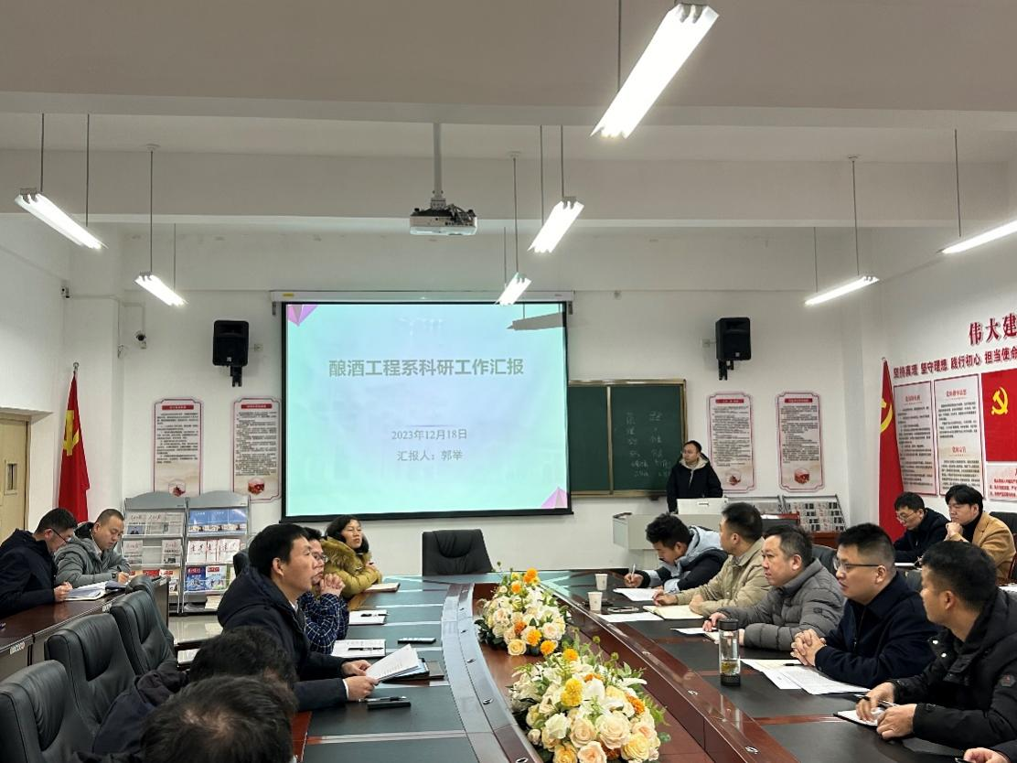 为进一步加强教学质量监控工作,切实提高教师科研水平及后勤服务水平,2023年12月18日,学校党委委员、副校长闫松显到酿酒工程系走访调研,后勤管理处处长钟音亮、科研处相关教师陪同调研,酿酒工程系全体教职工参加。