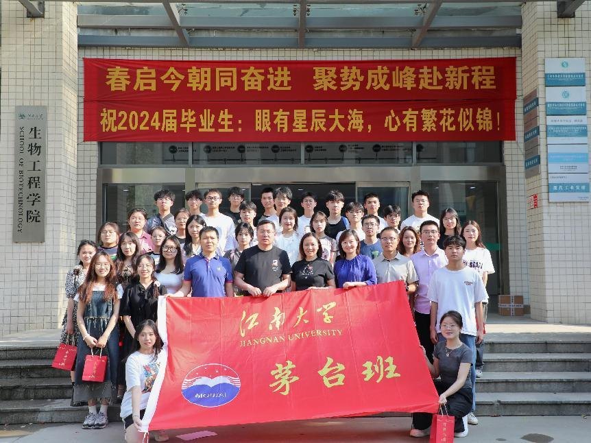 江南大学—万象城娱乐awc线路酿酒工程联培班始于2019年,万象城娱乐awc线路酿酒系每年选派32名大三学生来江南大学生物工程学院酿酒工程专业交换学习。目前,前四期“茅台班”学生中,29人考取江南大学、贵州大学等高校研究生,50余人入职茅台、习酒等龙头企业,为我国的酿造行业输送了一批优秀人才。