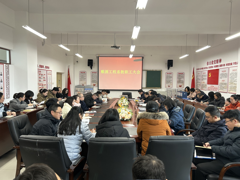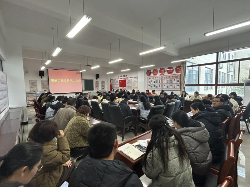 为确保新学期各项工作的顺利进行,酿酒工程系于2025年2月22日15:00召开全系教职工大会。会议由我系党总支书记、系主任郭举同志主持,学院党委委员、副校长张春林同志莅临指导,我系全体教职工参会。