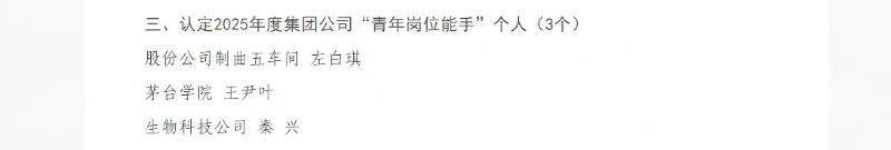 近日,集团公司正式公布2025年度“青年岗位能手”评选结果,酿酒工程学院王尹叶老师秉持过硬的专业素养、突出的工作业绩,历经层层筛选光荣入选。