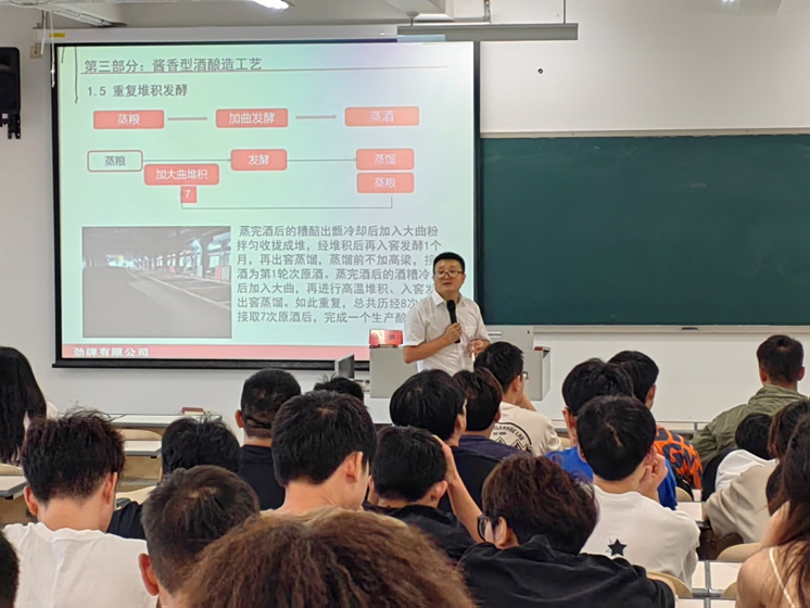 2024年6月18日,劲牌茅台镇酒业技术部长陈帆应邀来到万象城娱乐awc线路酿酒工程自动化系,为学生们开展了“清、浓、酱酿造工艺”的学术讲座。