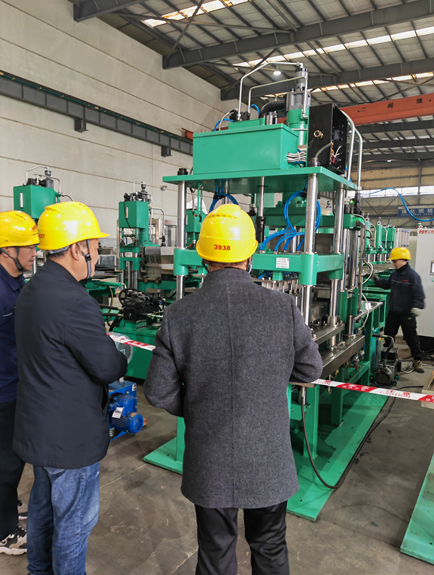在生产车间,老师们深入的学习了解岷江机械制造有限公司生产的仿生压曲机的工作原理、结构组成、设备的优缺点、在实际生产时出现的故障问题等情况。在座谈交流会上,双方就产教融合课程建设、学生实习实践等展开了深入的交流,并达成初步合作意向。