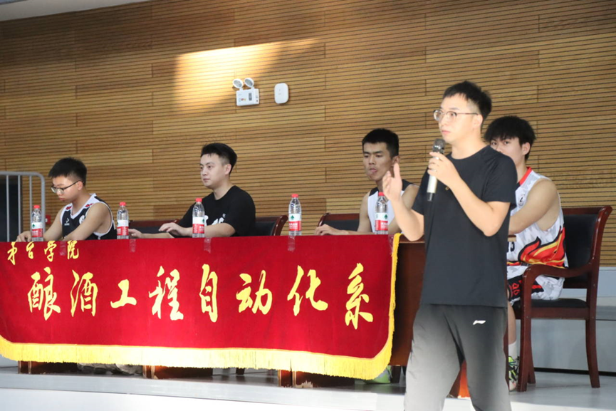 举办本次篮球比赛为提高同学们生命活力,综合促进身体素质和人体机能的全面发展,从而培养健康积极的心理素质,拥有团结协作等道德品质促进个性化发展与完善,进而有效的提高同学们的创新能力,营造系部良好的团体气氛,凝聚系部统一体。本次篮球赛开幕式由酿酒工程自动化系团总支书记邱旭老师为我们揭开帷幕。