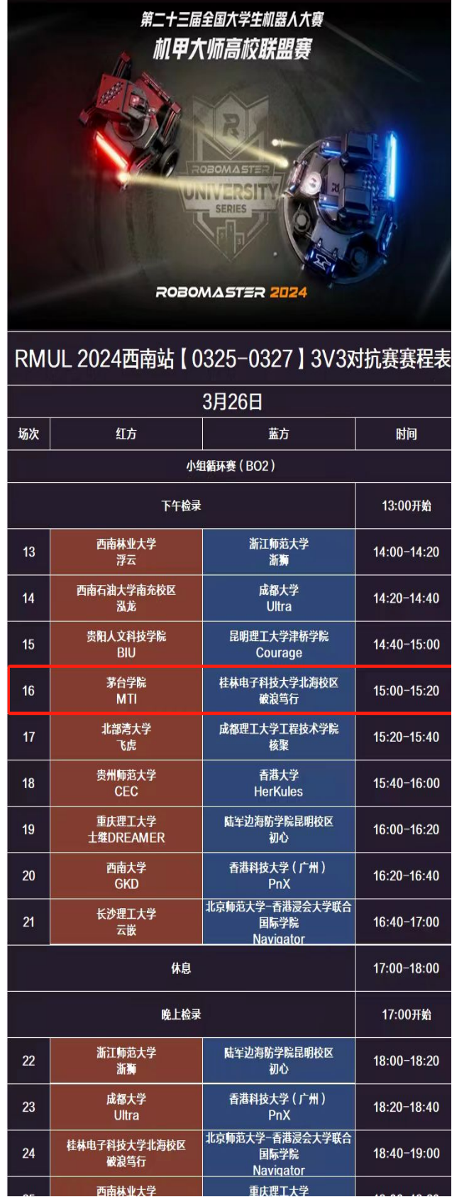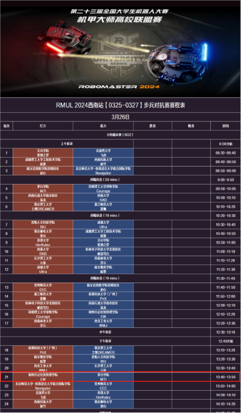 步兵对抗赛赛程展示
