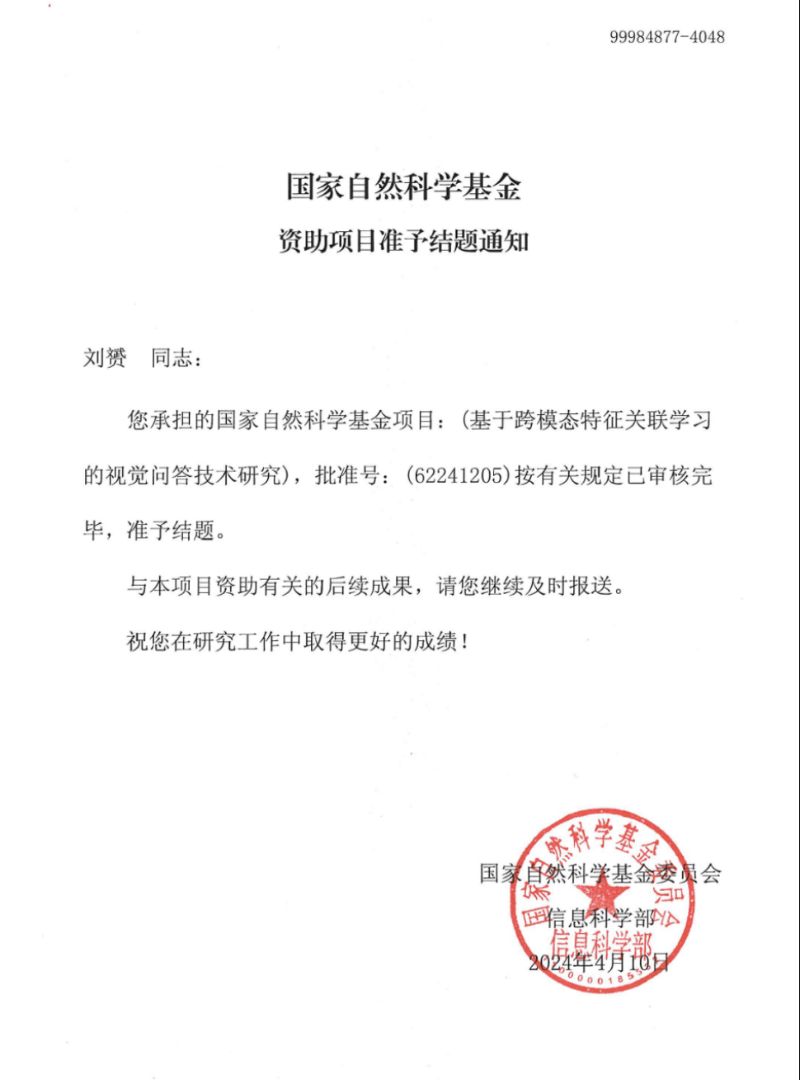 近日,万象城娱乐awc线路酿酒工程自动化系刘赟博士主持的国家自然科学基金专项项目“基于跨模态特征关联学习的视觉问答技术研究”顺利完成项目结题。这是万象城娱乐awc线路首个结题的国家自然科学基金项目,标志着酿酒工程自动化系在科学研究领域迈出了重要的一步,也为我系未来开展高水平科研工作奠定了坚实基础。