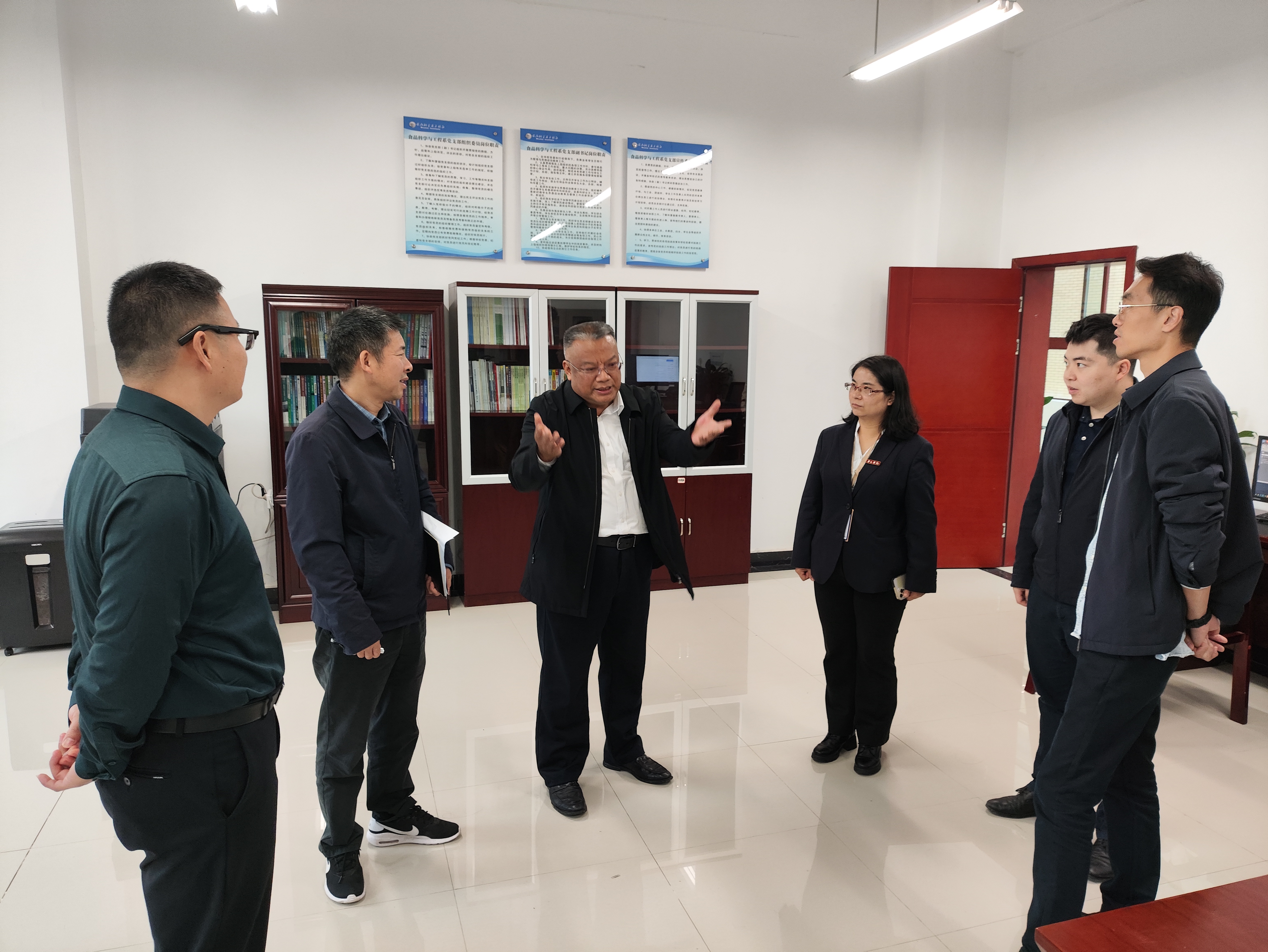 近日,学校党委副书记、常务副校长李增驰到食品科学与工程系走访调研,学校纪委书记田儒慧及我系党政班子成员陪同调研,听取工作汇报,了解本科教学合格评估工作的迎评准备情况,现场协调解决评建工作遇到的问题。