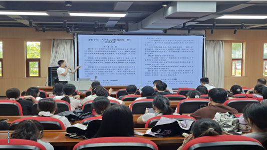 大会伊始,曾迅围绕 “西部计划” 与征兵工作展开专项宣讲,从服务领域、报名流程到学费补偿、就业优待等政策细节逐一解读,用清晰的政策 “干货” 为毕业生拓宽就业视野。他鼓励有理想、敢担当的同学们,将个人发展与国家需求相结合,在基层一线或军营中锤炼本领、实现人生价值。