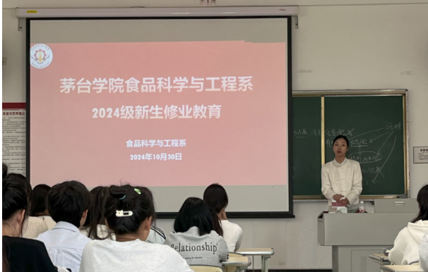 为发挥专业认知教育在引导人才培养中的积极作用,帮助2024级新生了解专业特色和就业前景,明确学习目标,合理规划未来。食品科学与工程系于10月30日组织开展2024级新生修业教育,主讲嘉宾为食品科学与工程专业负责人吴广辉、食品质量与安全专业负责人宋亚,2024级辅导员郭雪峰以及全体新生共同参与本次讲座。