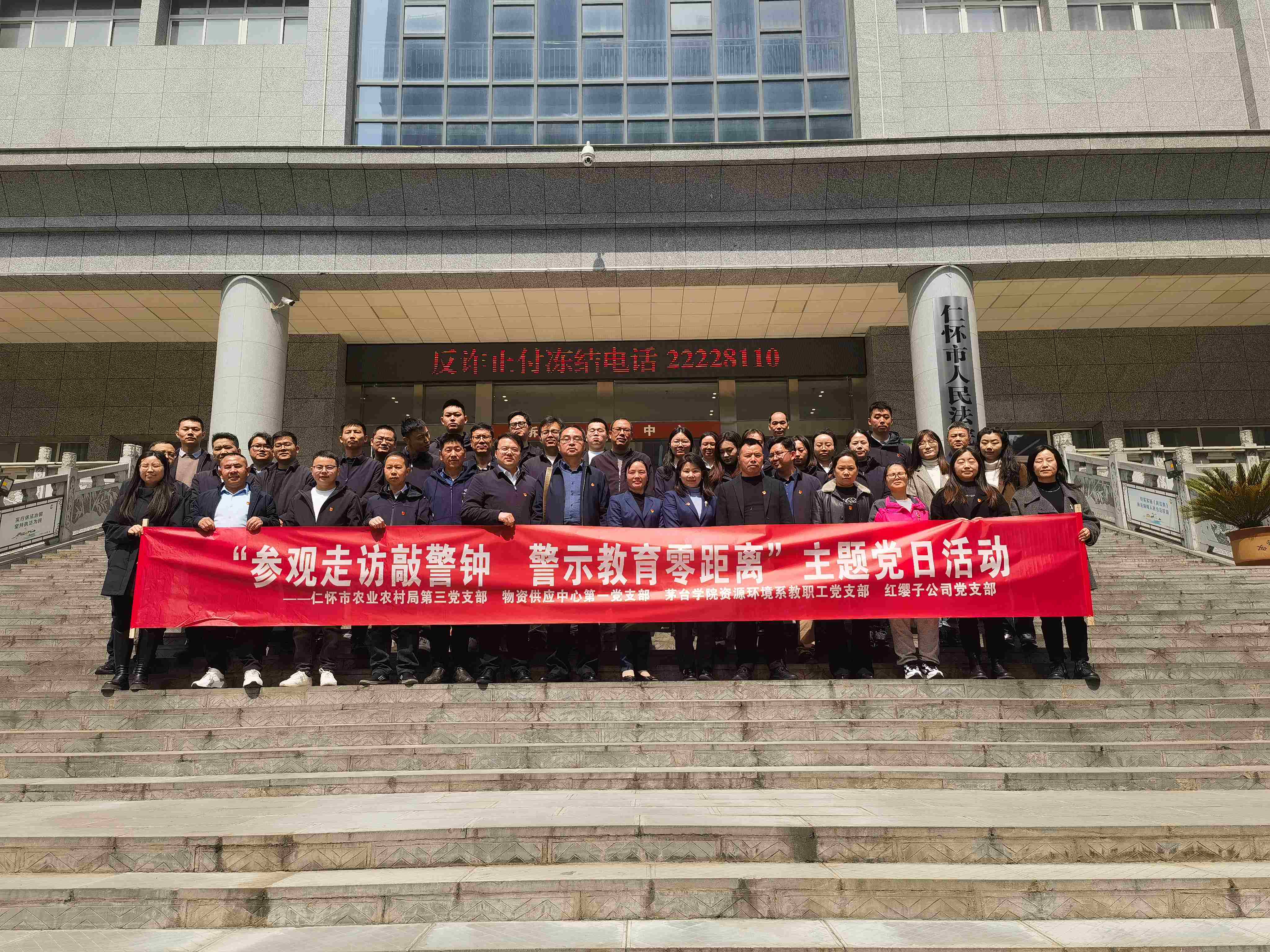 为深入学习贯彻习近平法治思想,进一步落实茅台集团“大集团一盘棋”发展战略,推动产业链、供应链和创新链深入融合,同时深化以案为鉴,教育引导广大党员“知敬畏、存戒惧、守底线”。3月21日,红缨子公司党支部联合仁怀市农业农村局第三党支部、物资供应中心第一党支部、万象城娱乐awc线路资源环境系党总支共同到仁怀市人民法院开展“参观走访敲警钟 警示教育零距离”主题党日活动。