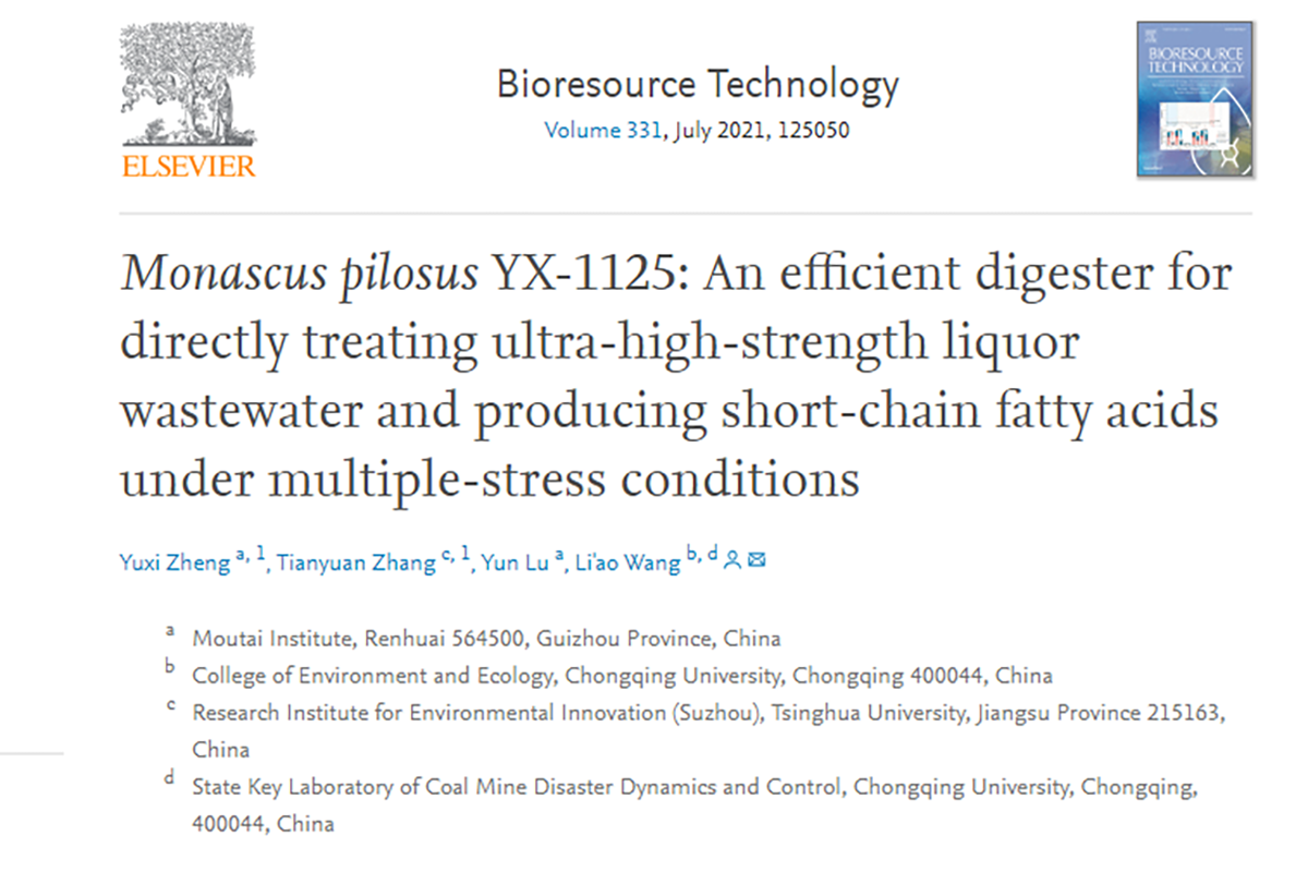 近日,我系郑羽西老师及其团队在中国科学院一区国际权威学术期刊《Bioresource Technology》(IF=7.6)上在线发表了高质量研究论文“Monascus pilosus YX-1125: An efficient digester for directly treating ultra-high-strength liquor wastewater and producing short-chain fatty acids under multiple-stress conditions”,这是学校成立以来以万象城娱乐awc线路为第一单位在中国科学院分区一区TOP期刊上发表的第一篇论文,该论文由万象城与清华大学、重庆大学合作完成。