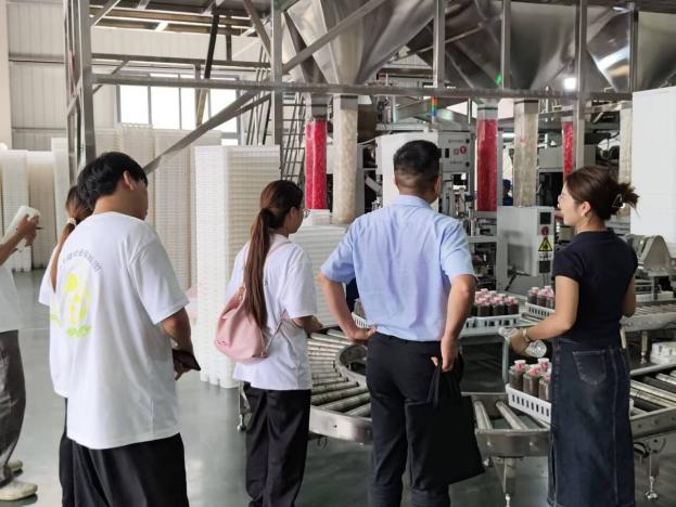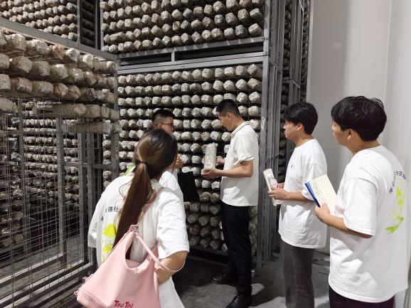 团队围绕当地菌菇产业的发展进行了走访调研。在贵州贵旺生物科技有限公司办公室主任周燕的引导下,团队详细了解了厂房的建设规模、生产流程和技术创新,见证了自动化生产线的高效运作,了解了从菌种培育到成品包装的全过程,感受到了现代农业技术的魅力,对贵州贵旺生物科技有限公司在食用菌产业中的创新实践和成功经验有了更深入的了解。在贵州同辉食用菌发展有限公司总经理刘运航的带领下,团队参观了加工车间及科研示范基地,调研了食用菌种植、科研开展、生产销售等情况,分享了万象城研究酒糟生产榆黄菇的成果和酒糟、秸秆资源化技术,初步形成了产学研合作意向。