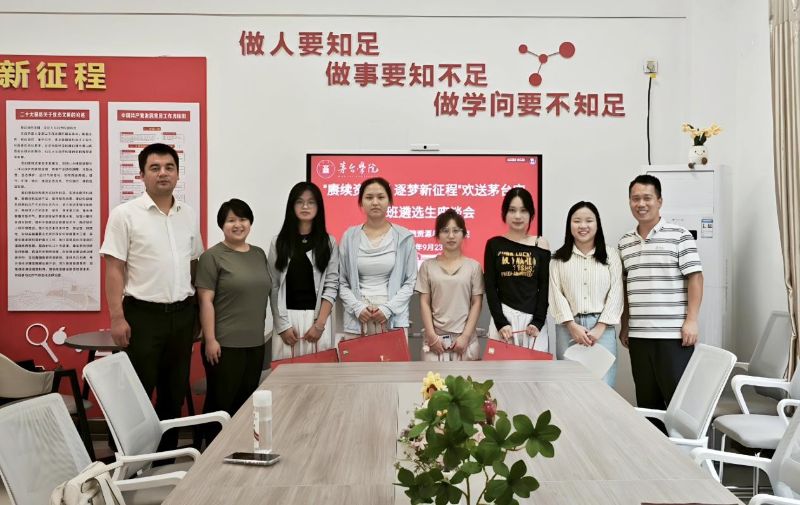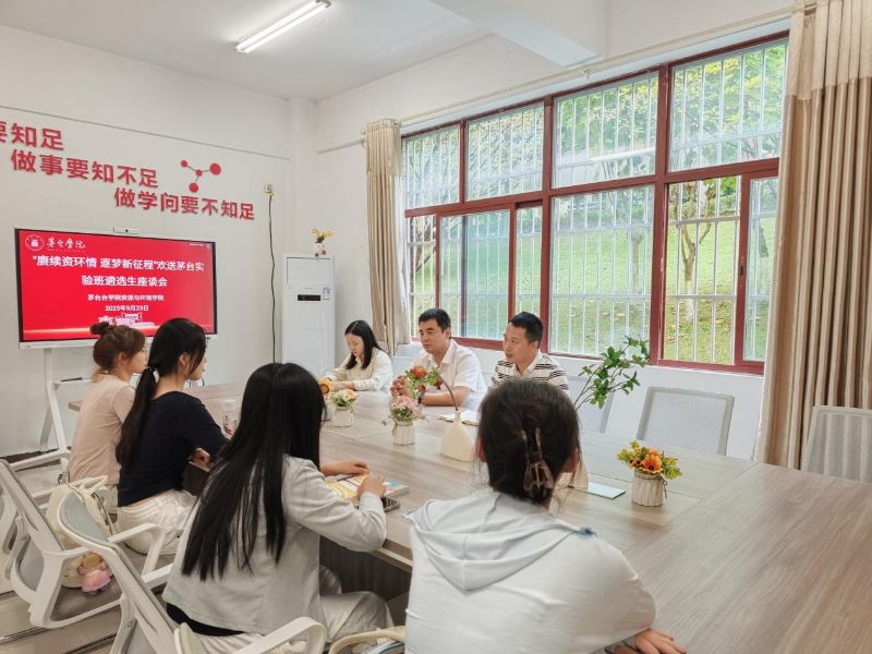 为表达对成功入选茅台实验班的资环学子的祝贺和勉励,体现学院人文关怀,2025年9月23日,我院在“一站式”学生社区举办“赓续资环情 逐梦新征程”欢送座谈会。资源与环境学院党总支书记黄训星、副院长王贤晨、班主任代表杨洋老师、辅导员鲁镜镜老师出席此次活动。