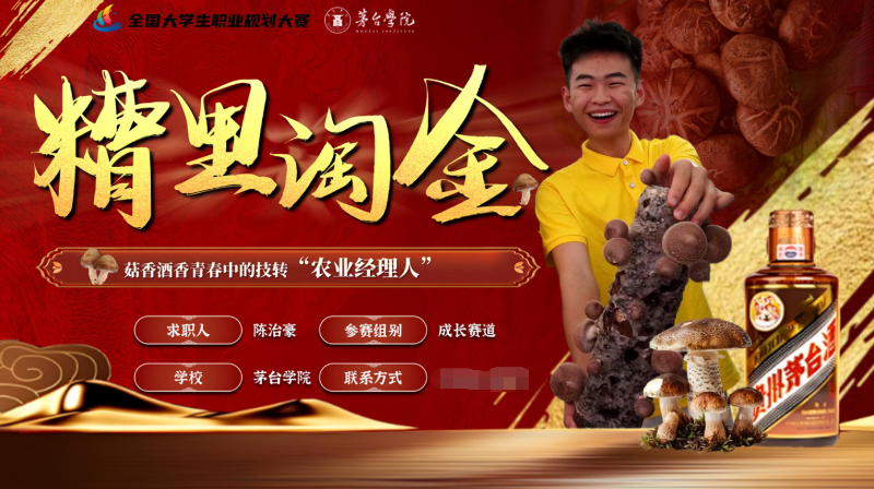 陈治豪同学以“糟里淘金——菇香酒香青春中的技转农业经理人”为职业,结合酿酒工程专业与酒糟资源化研究实践,展现了青年学子扎根产业、创新创业的责任意识与时代风采。