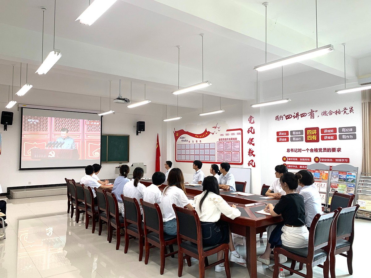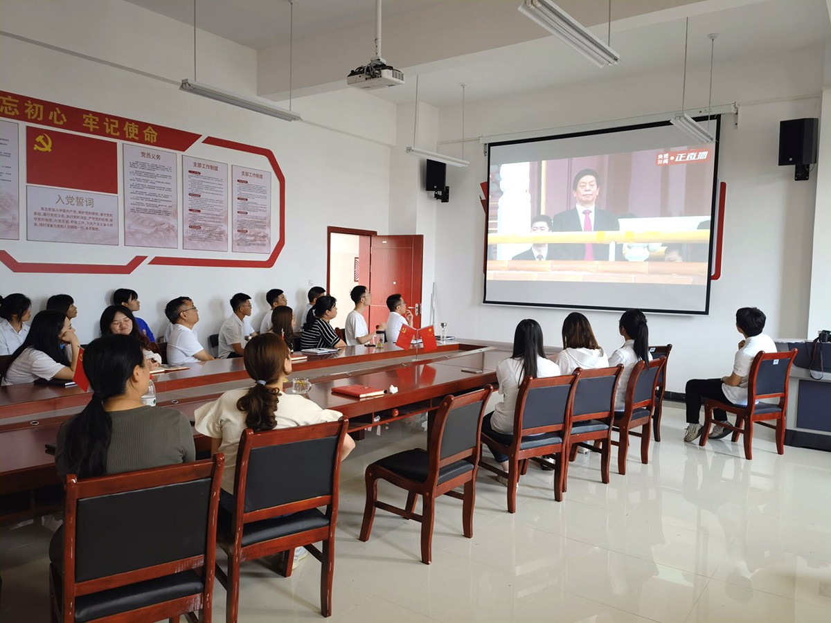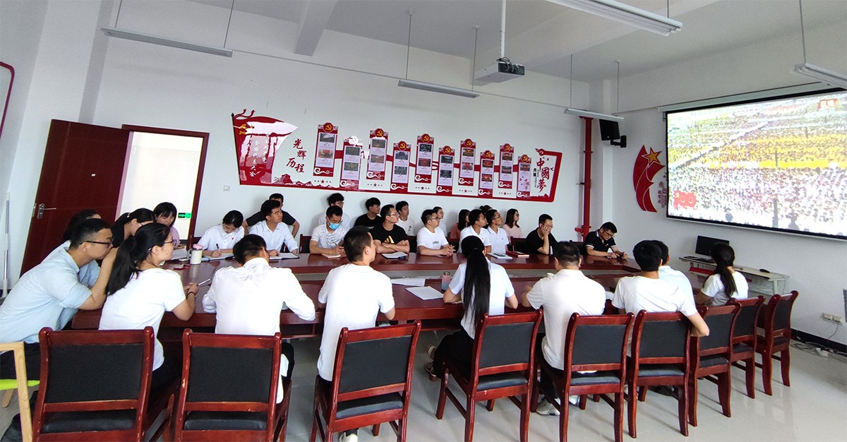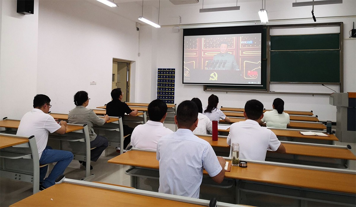 7月1日早上8点,万象城娱乐awc线路全校师生员工集中观看了中共中央庆祝中国共产党成立100周年大会直播。
