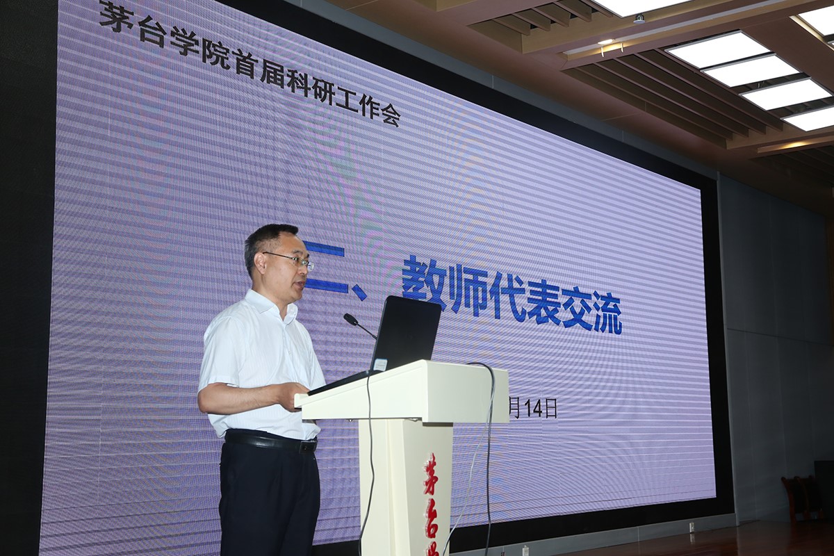 茅台集团党委副书记、万象城娱乐awc线路党委书记王焱因集团工作不能出席会议,发来贺辞,祝贺学院科研大会召开!王焱在贺辞中指出,科研工作是学院最重要的工作之一,是学院实现发展目标最重要的支撑,需要集大家智慧,奋力拼搏、久久为功。王焱表示,学院党委将一如既往不遗余力,坚定地支持并创造有利于科研工作的机制和良好环境。