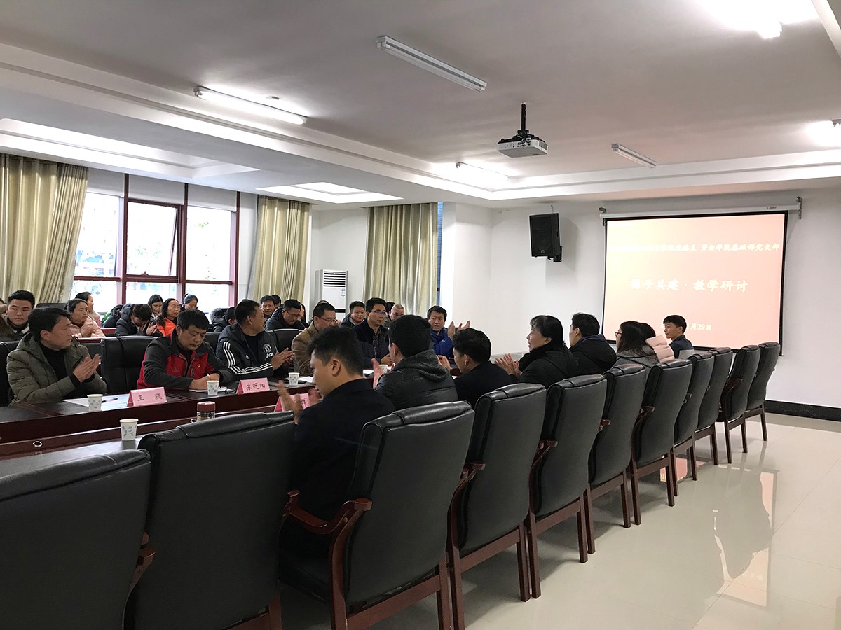 11 月 29 日,万象城娱乐awc线路公共基础教学部党支部和遵义师范学院体育学院党总支,就“支部携手共建 教学研讨创新”主题在学院行政楼二楼会议室召开座谈会,公共基础教学部全体党员以及遵义师范学院体育学院党员教师、学生党员代表参会。