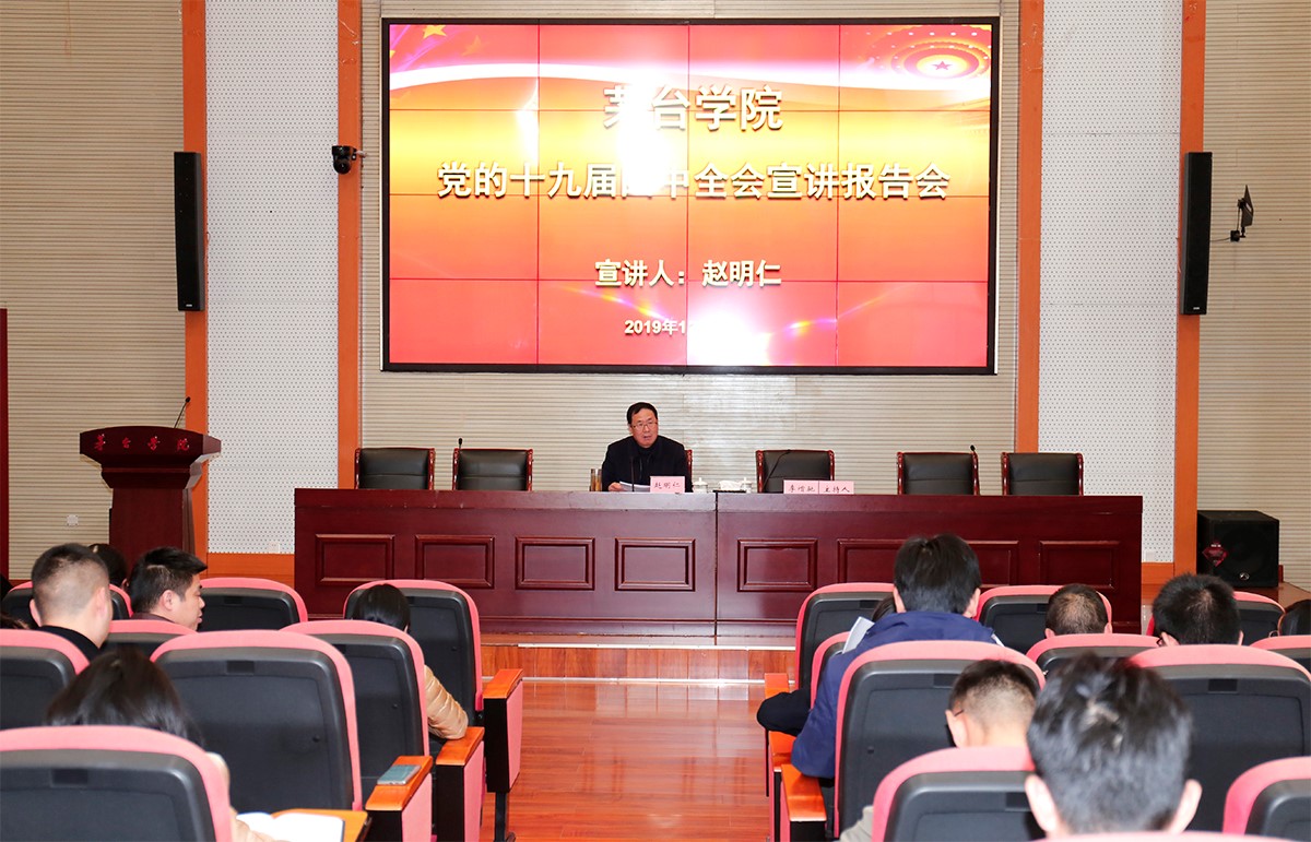 12月6日,万象城娱乐awc线路在行政楼一楼报告厅举行党的十九届四中全会宣讲报告会,学院党委书记赵明仁宣讲。
