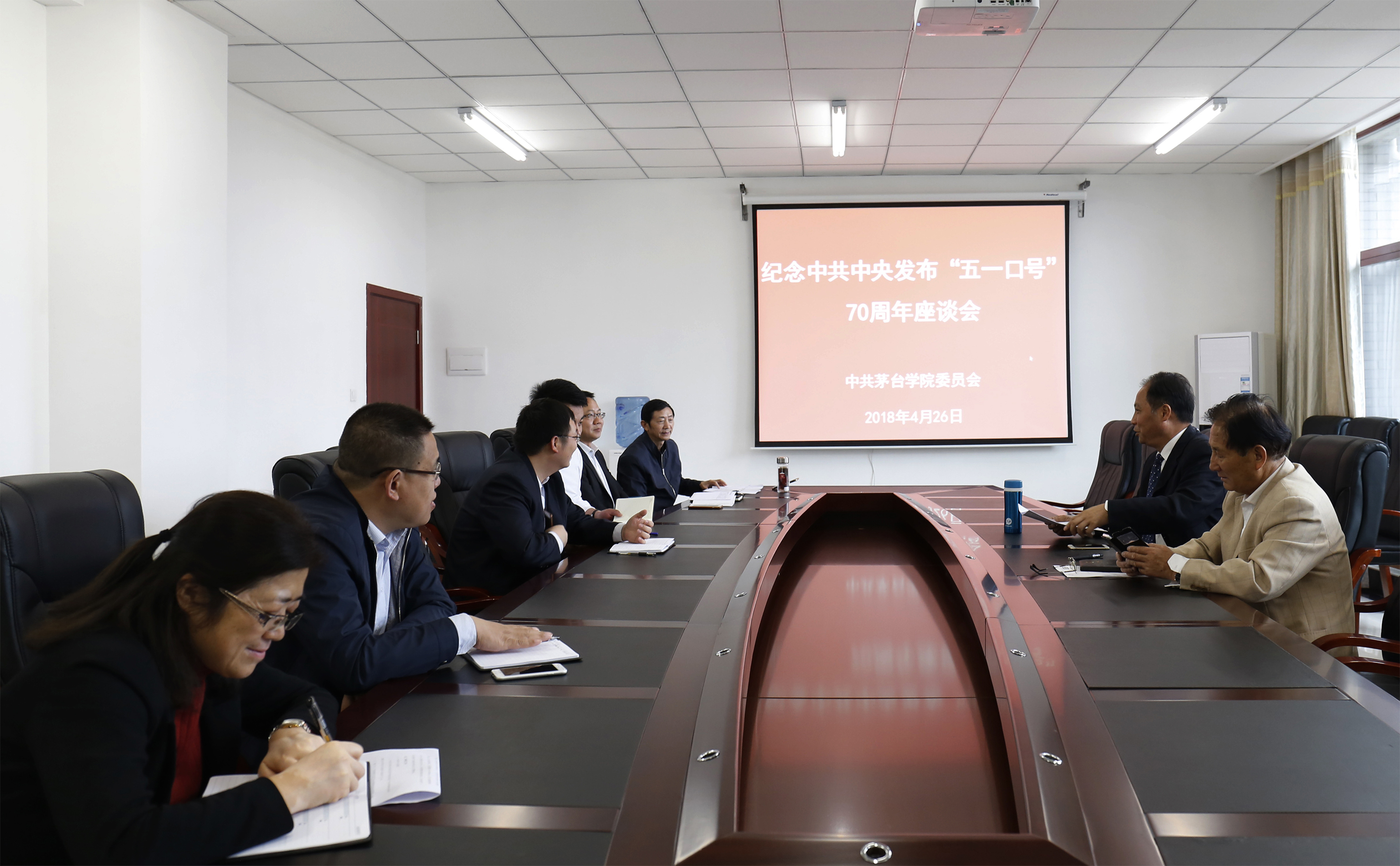 4月26日,按照茅台集团公司党委有关通知精神,万象城娱乐awc线路党委召开座谈会,组织学院民盟、九三学社和无党派人士以及群众代表进行座谈,纪念中共中央发布“五一口号”70周年。