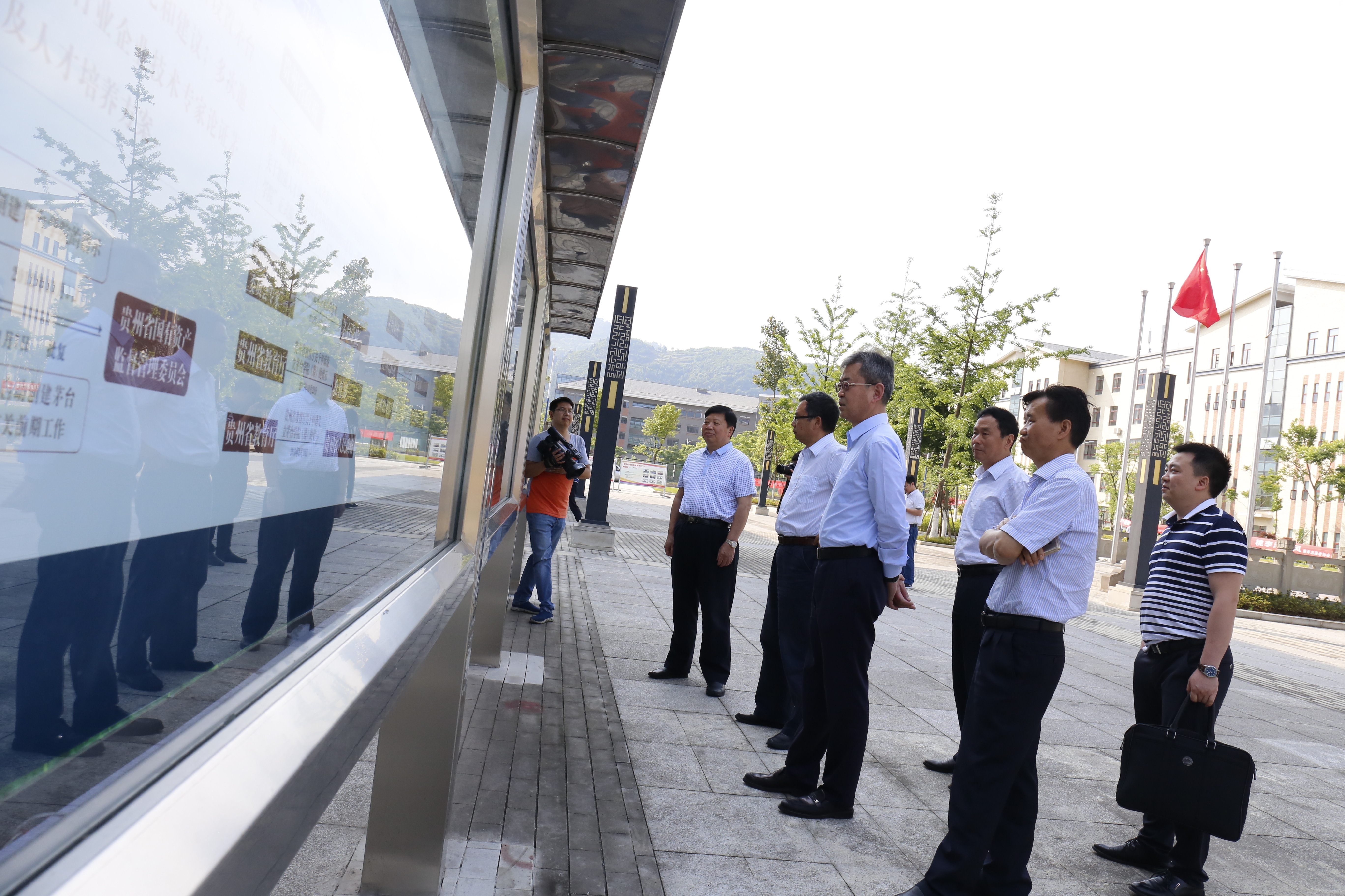 赵书跃一行在校领导陪同下,从学院正门至行政楼前,饶有兴致地驻足于宣传橱窗和宣传展板前,细心地听介绍、看内容,对学院从申建创办到正式办学,以及办学以来各个阶段、各个方面工作情况作了深入细致的了解查看。不时询查教职员工教学工作科研情况、了解学生状况以及校园建设等情况。