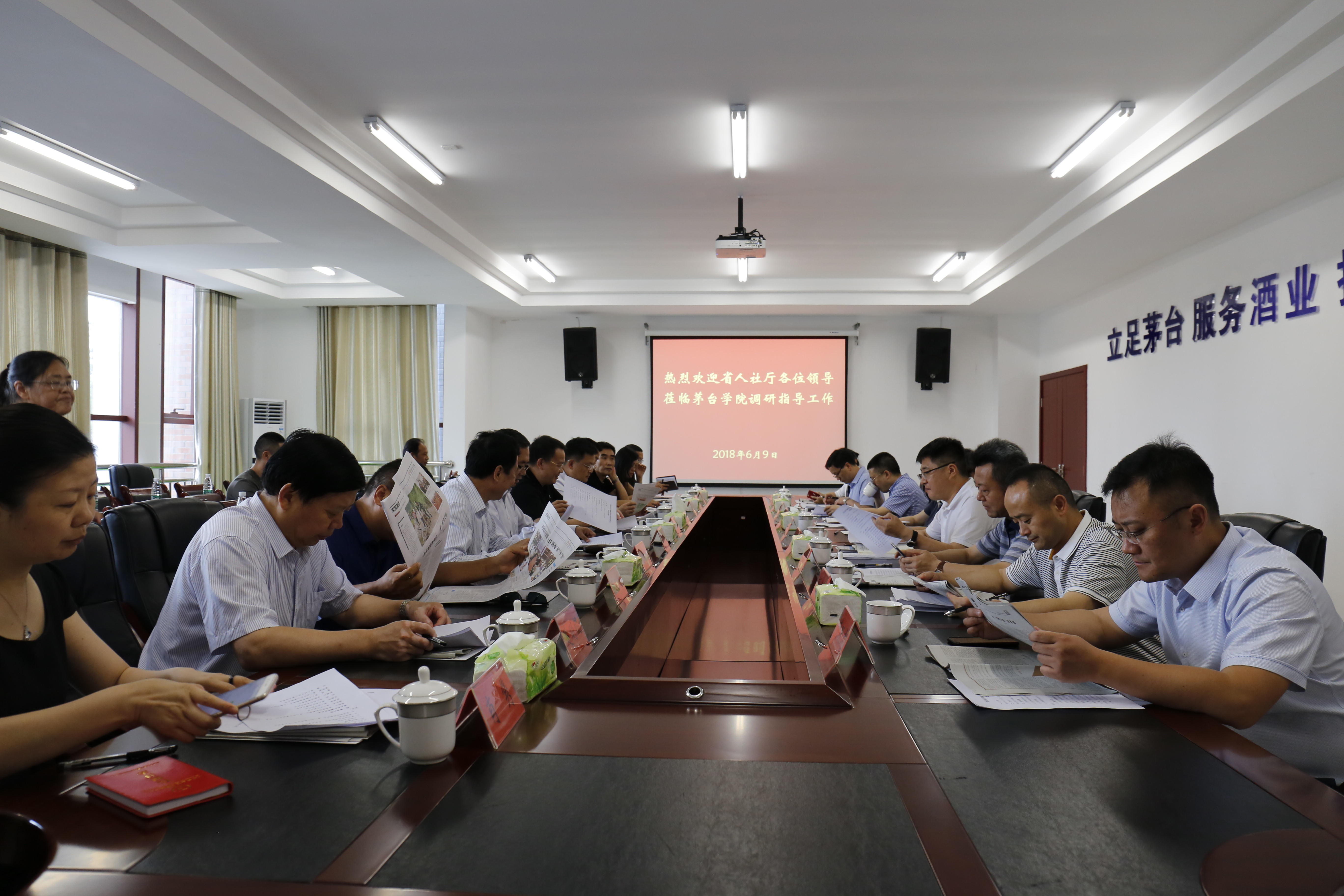 省人社厅副厅长施长冬、徐海涛,集团公司党委委员、总法律顾问刘汉林,遵义市委组织部副部长,市人力资源和社会保障局党组书记、局长梁铮,仁怀市委常委、市委组织部部长李锋,市委组织部副部长、市人力资源和社会保障局党组书记、局长陈光琦以及集团公司、遵义市、仁怀市有关部门负责人,万象城娱乐awc线路副校长楚明锟陪同调研并参加调研座谈会。(宣传文化处)