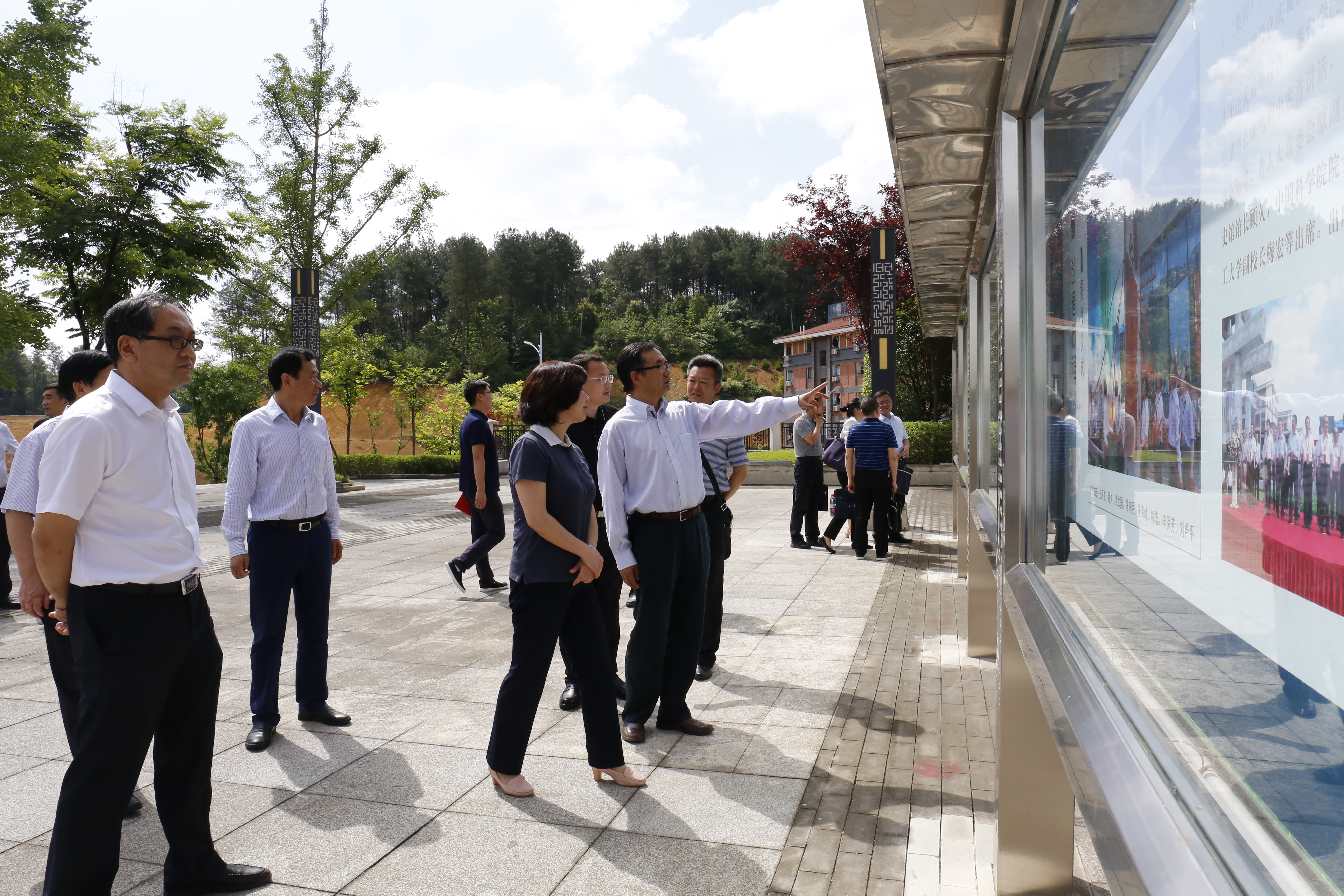 此前,调研组一行亲临学院“贵州省第一八三国家职业技能鉴定所”、专家公寓楼等地, 在学院酿酒工程自动化系主任兼“贵州省第一八三国家职业技能鉴定所”副所长王开建教授等人导引下,详细查看了解“维修电工技师技能教学实训”等有关情况,观看学院“5.23办学周年庆”宣传橱窗展板等。