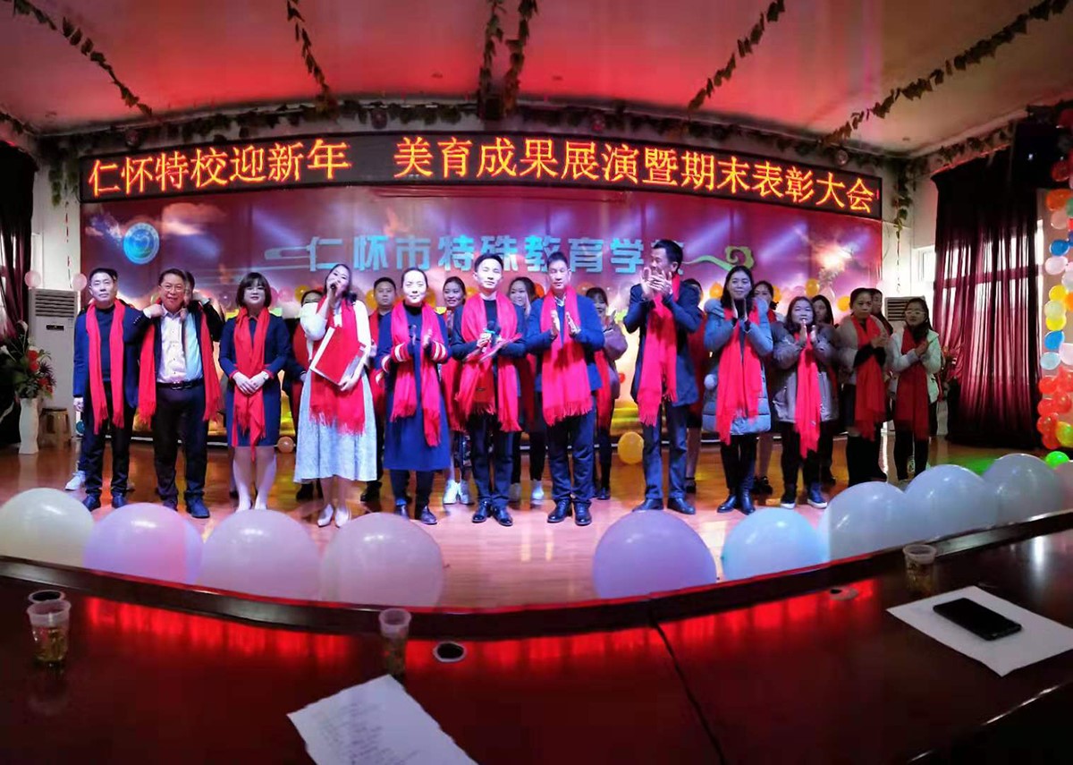 12月31日,万象城娱乐awc线路团委应邀参加仁怀特殊学校的“迎新年美育成果展演暨期末表彰大会”,仁怀市教育局基础教育股股长陈登乾莅临活动并讲话。