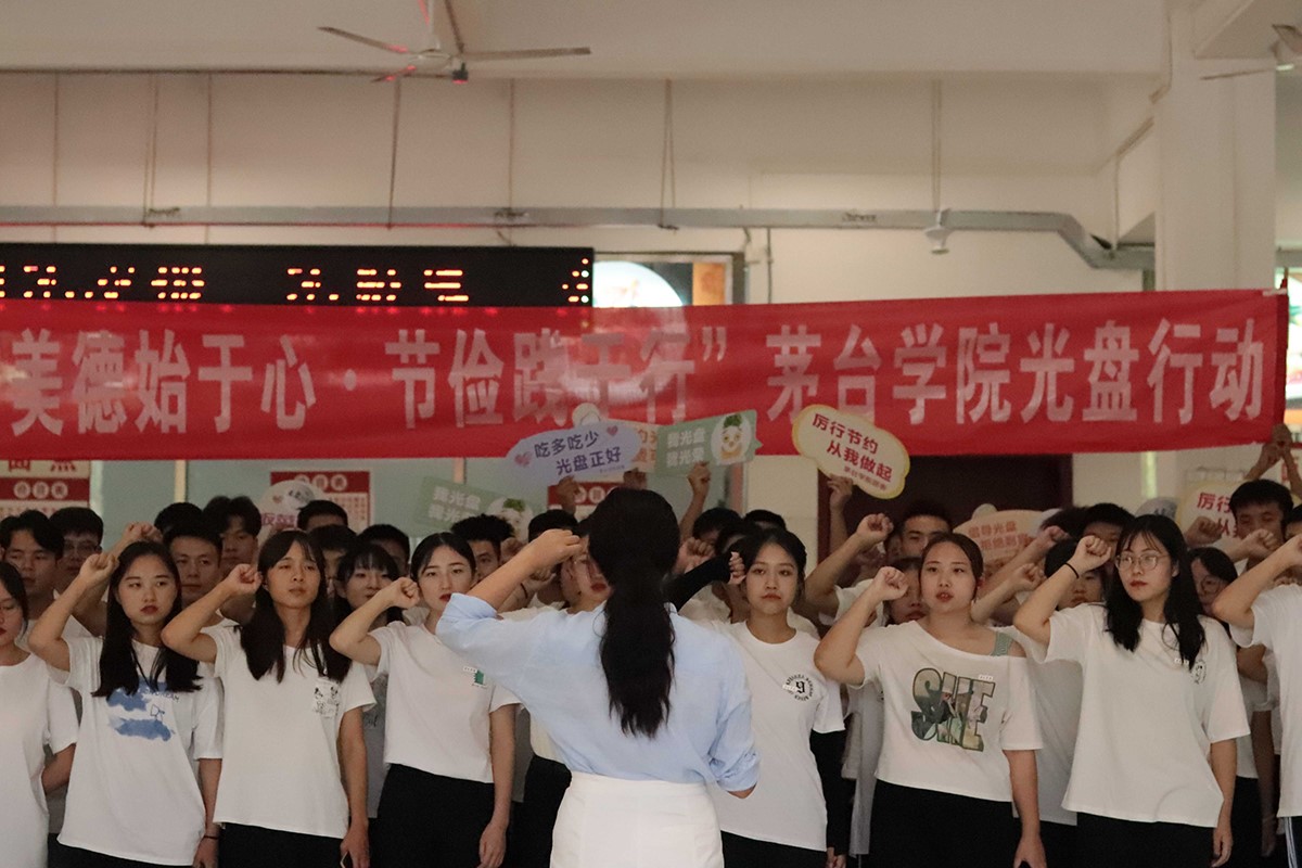 正值饭点,茅院学子随着流泻于校园的轻音乐络绎而至。一场精心策划的光盘快闪活动在第二食堂一楼上演,他们用舞蹈和音乐相的形式,向大家传递了“文明用餐,勤俭节约”的理念。“厉行节约、反对浪费,光盘行动、拒绝剩宴”,在场同学庄严肃立,用青春的名义承诺,用青春的誓言宣誓……