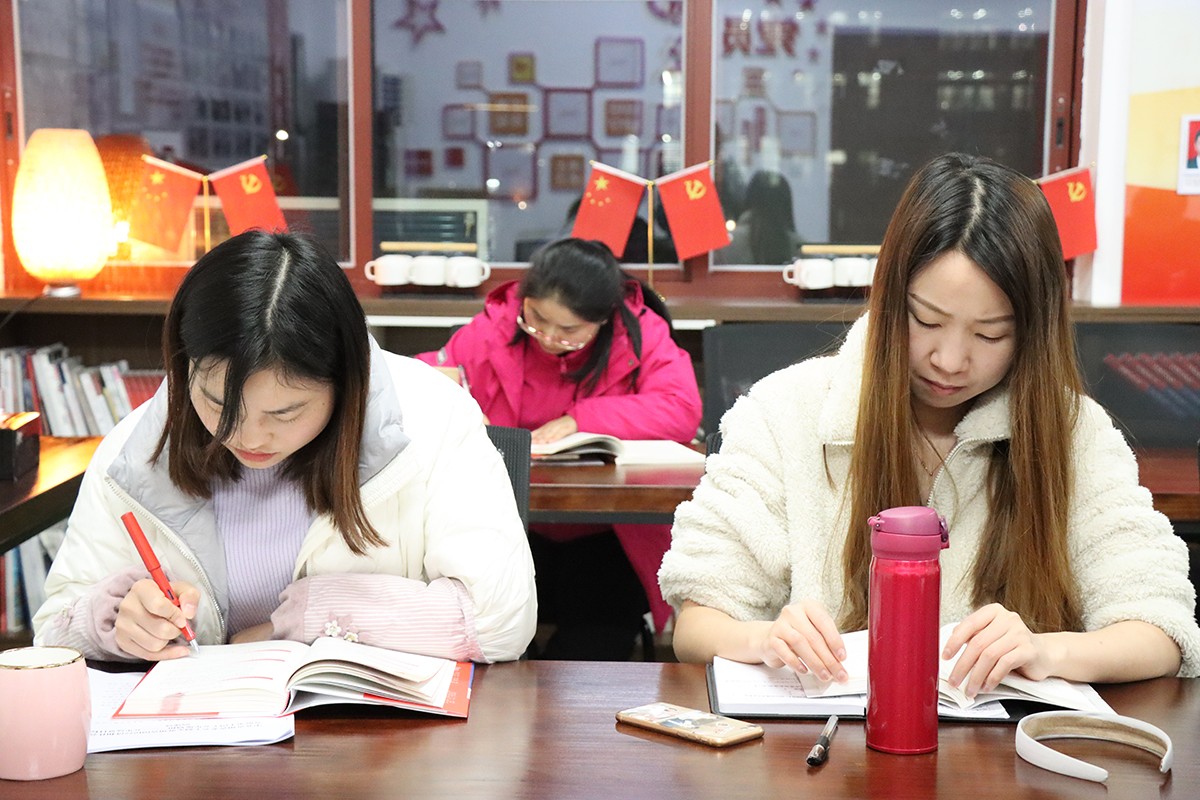 虽已入春,连日来的阴冷让夜幕早早地笼罩在仁怀市南部新城的上空。学生的晚自习还没有结束,路边交织的灯光偶尔落在紧裹大衣匆匆而过的寥寥身影上。万象城娱乐awc线路行政楼安静地守护在灯火通明的教学楼边上。已近晚八时许,行政工作人员几乎已下班回家,而三楼右侧的一排窗户还透出明亮的光线,这是机关第一党支部的同志们在党员活动室开展晚间阅读活动。