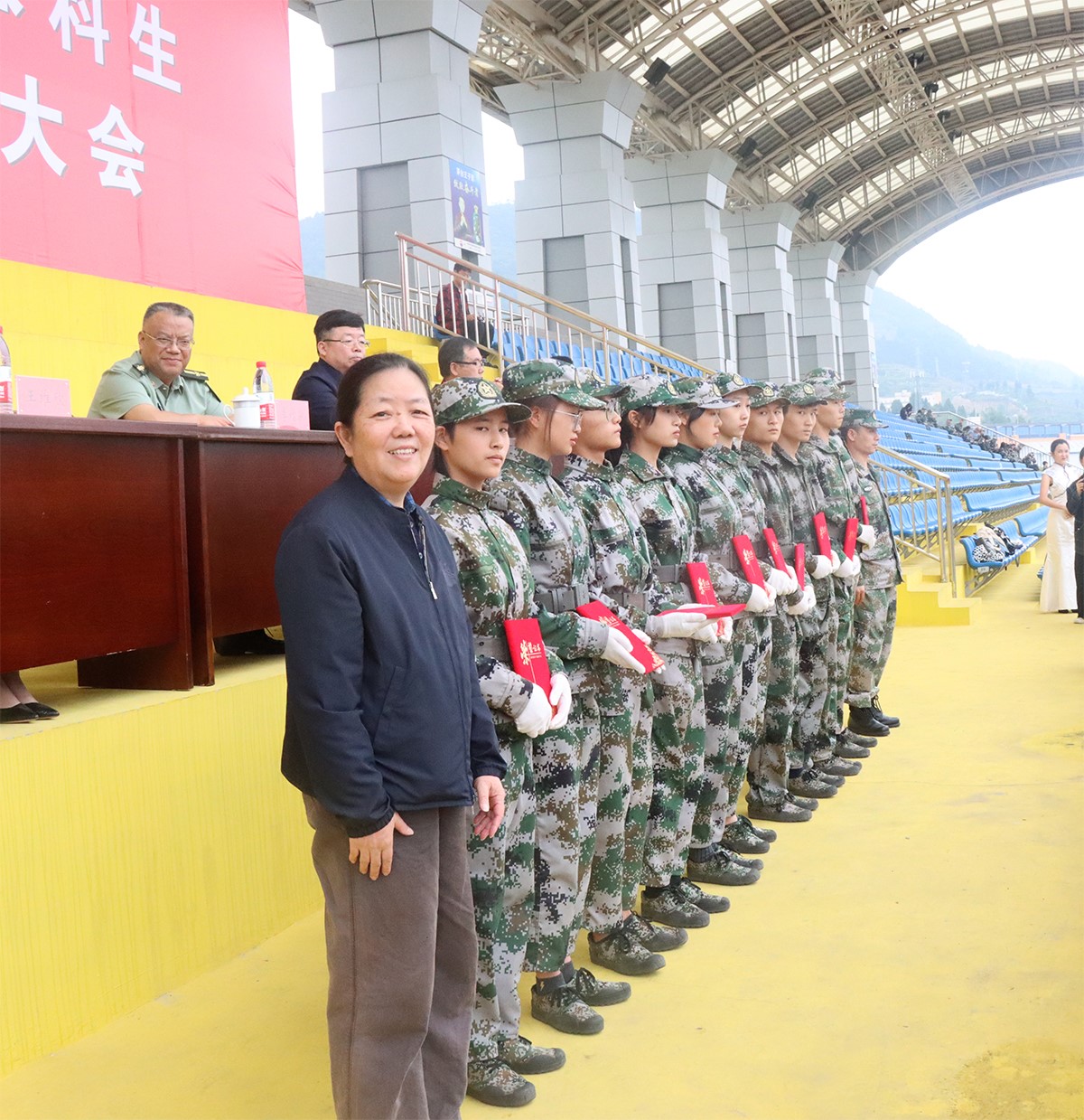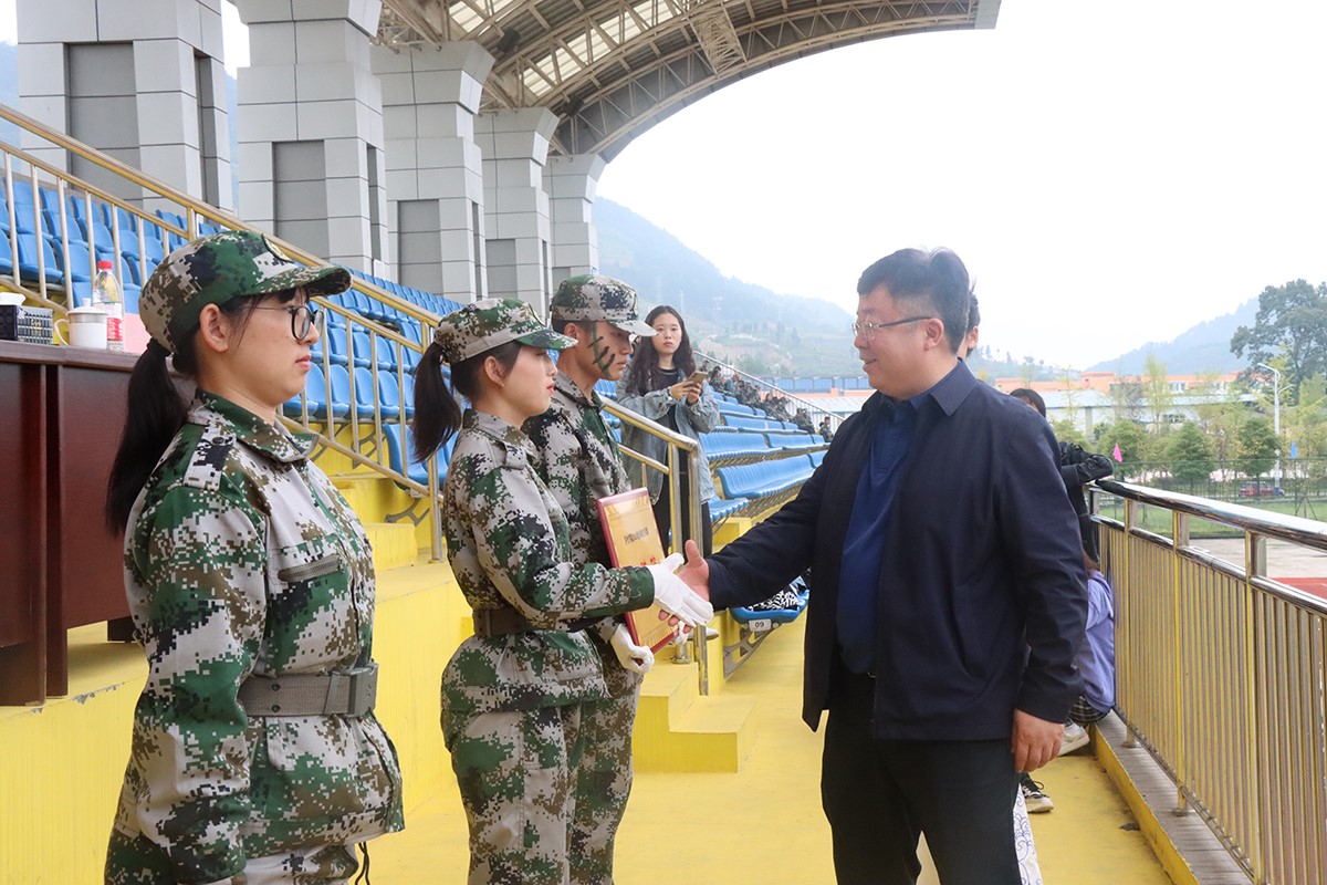 连日的细雨停下了脚步,驻足倾听着从万象城娱乐awc线路田径场传出的雄迈音乐。旌旗招展、军歌嘹亮,1000多名大一学生迈着刚劲步伐,飒爽英姿映衬着偌大田径场。9月30日,万象城娱乐awc线路2020级学生军训总结暨表彰大会在学院田径场如期举行。