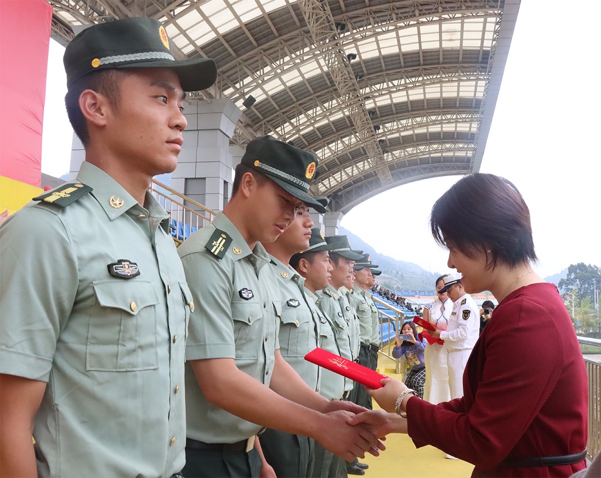 仁怀市人民武装部部长罗波颁授2020级学生军训优秀教官证书